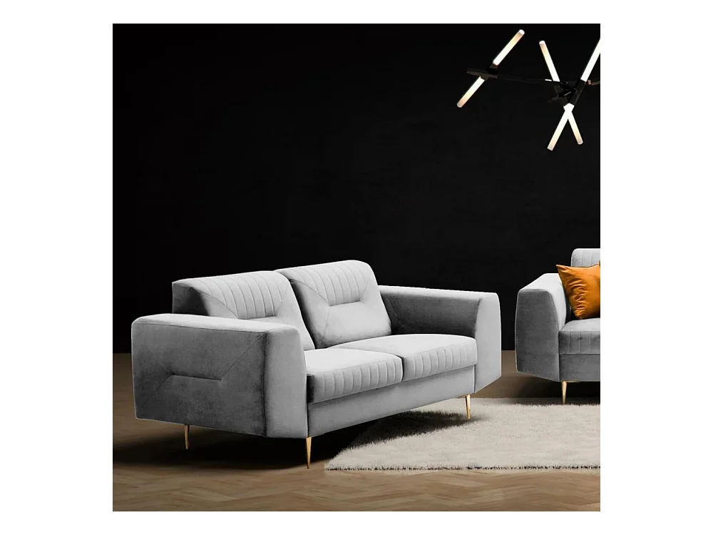CANAPE 2 PLACES Venezia gris clair avec pieds dorés