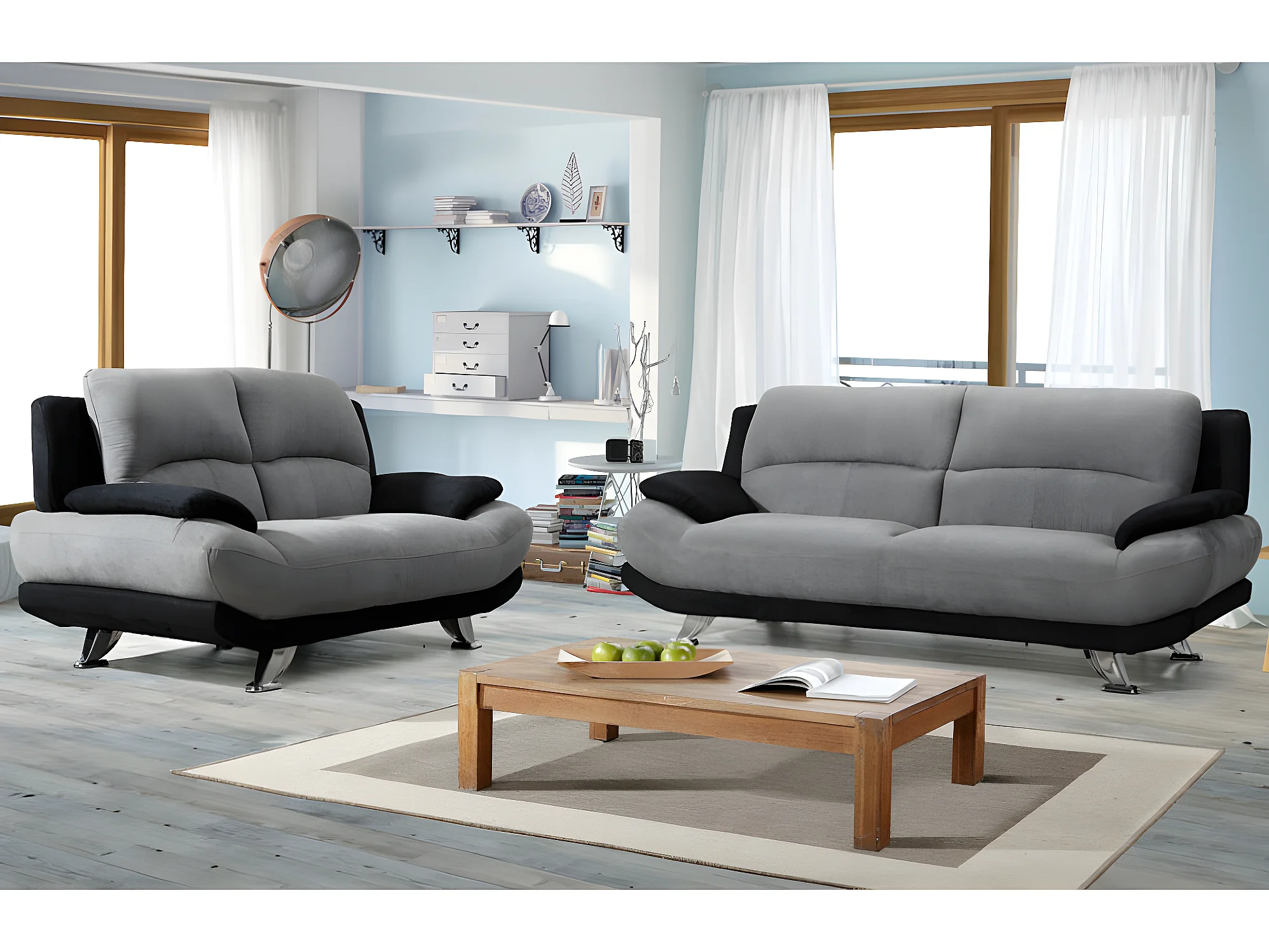 Canapés 3 places et 2 places en microfibre MUSKO - Bicolore gris et noir