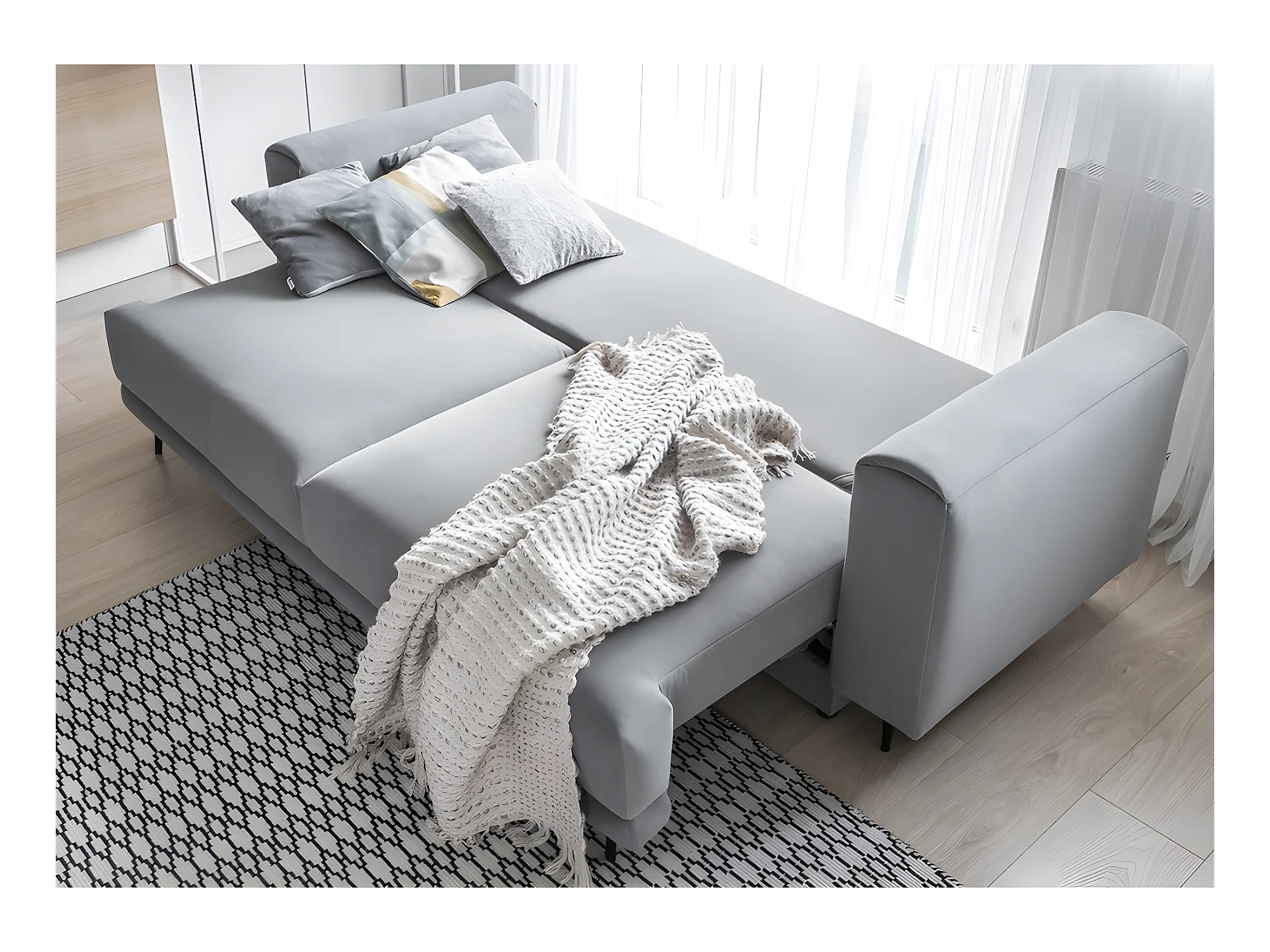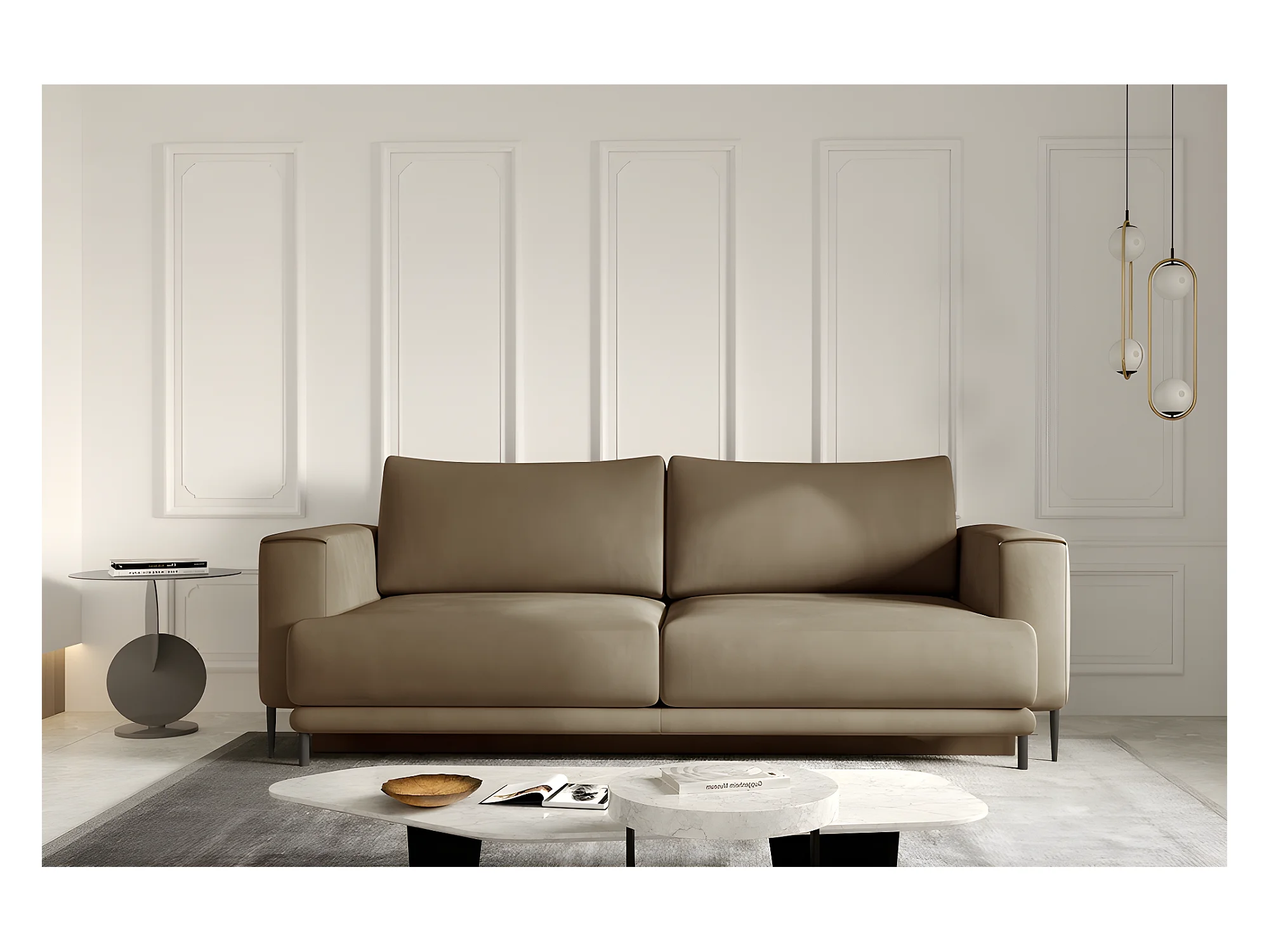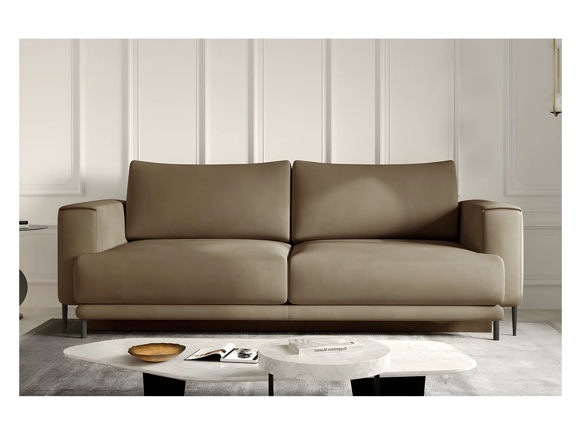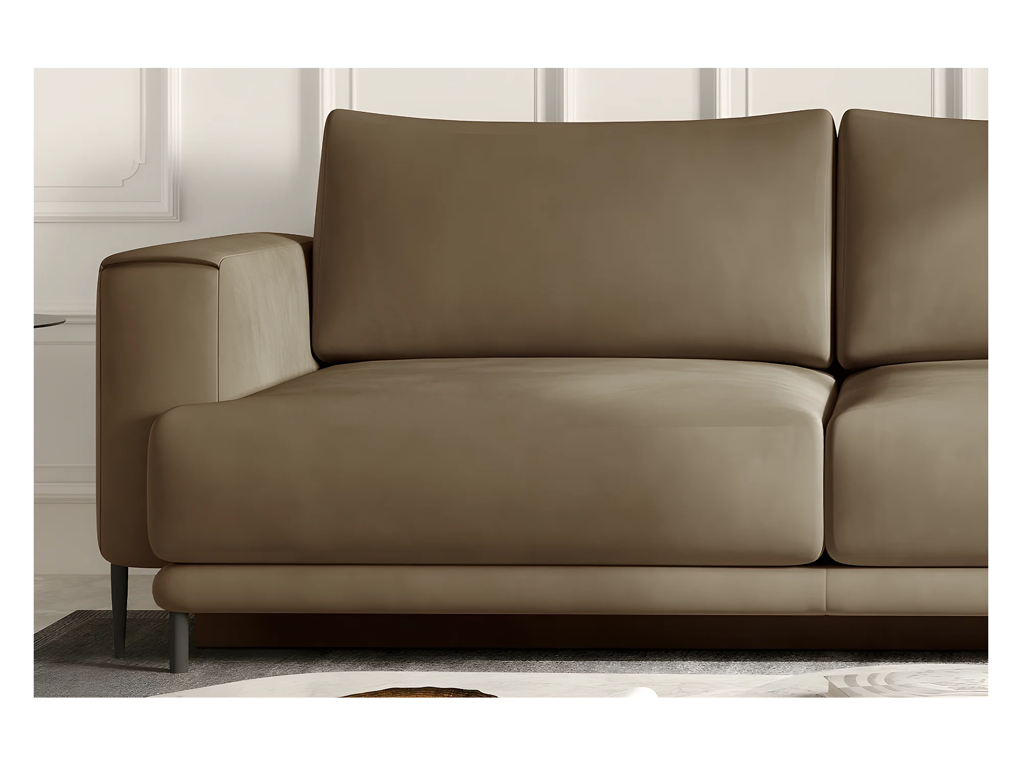 Canapé 3/4 places convertible et espace de rangement - beige - en tissu de qualité, DANY