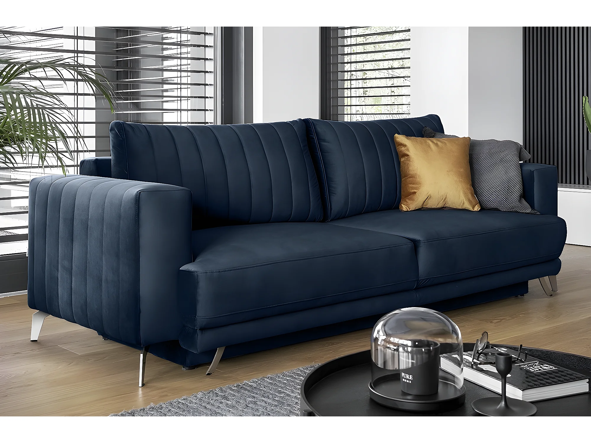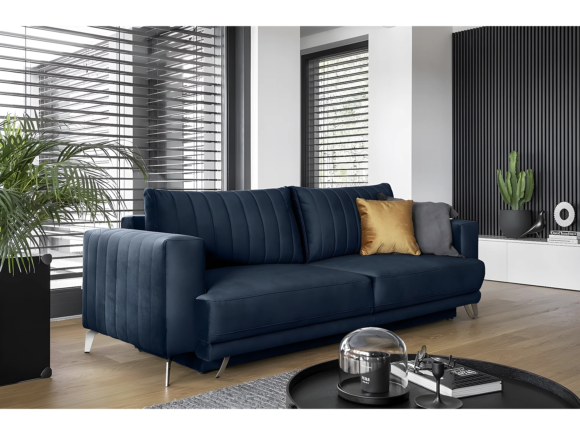 Canapé 3/4 places convertible et espace de rangement - bleu - en tissu de qualité luxe, ELSA