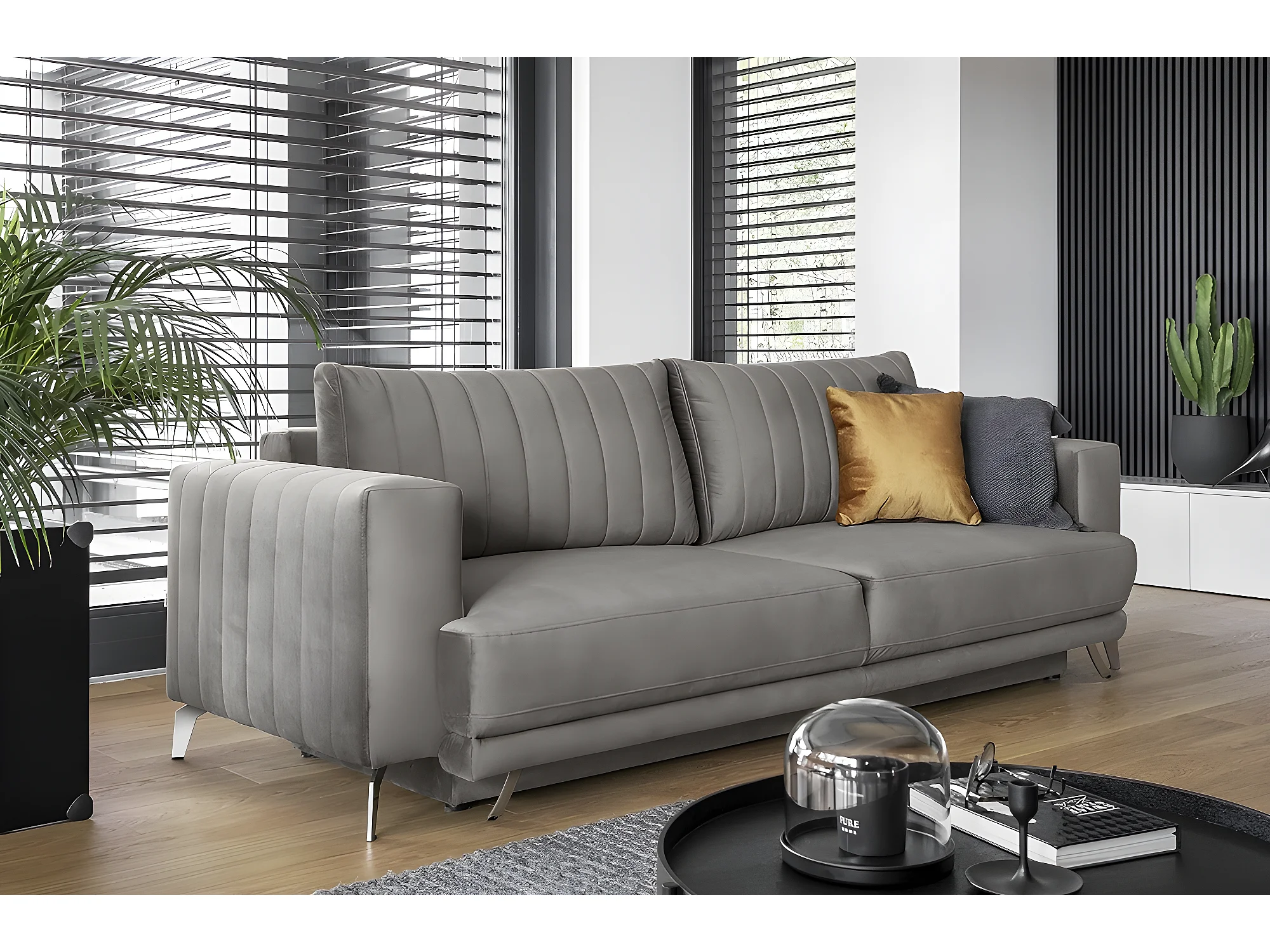 Canapé 3/4 places convertible et espace de rangement - gris - en tissu de qualité luxe, ELSA