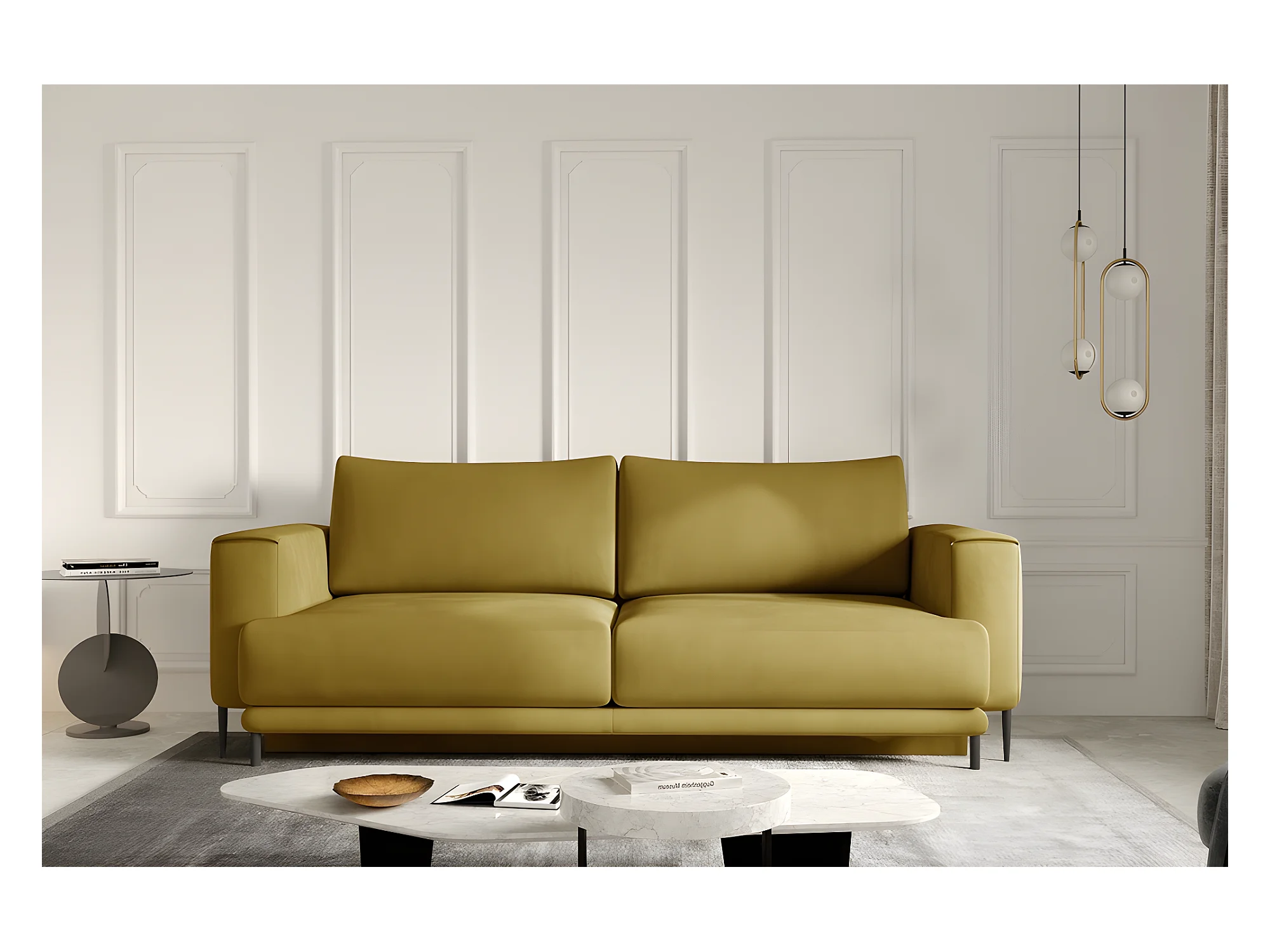 Canapé 3/4 places convertible et espace de rangement - Moutarde - en tissu de qualité, DANY