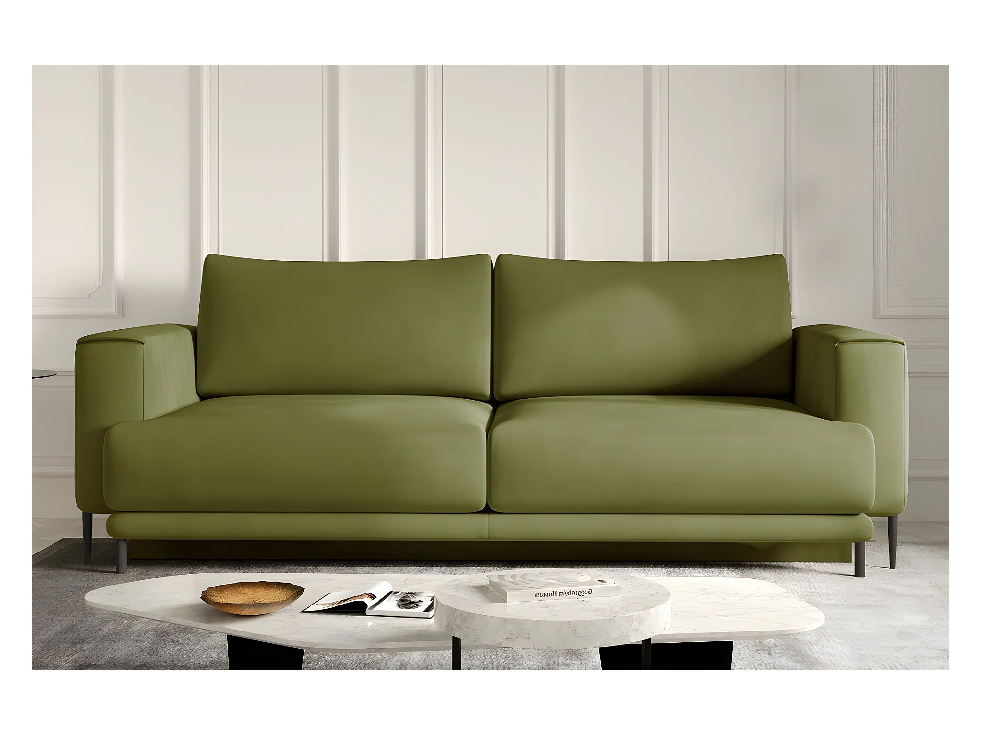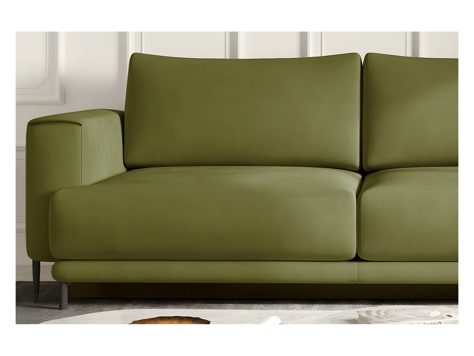 Canapé 3/4 places convertible et espace de rangement - vert olive - en tissu de qualité, DANY