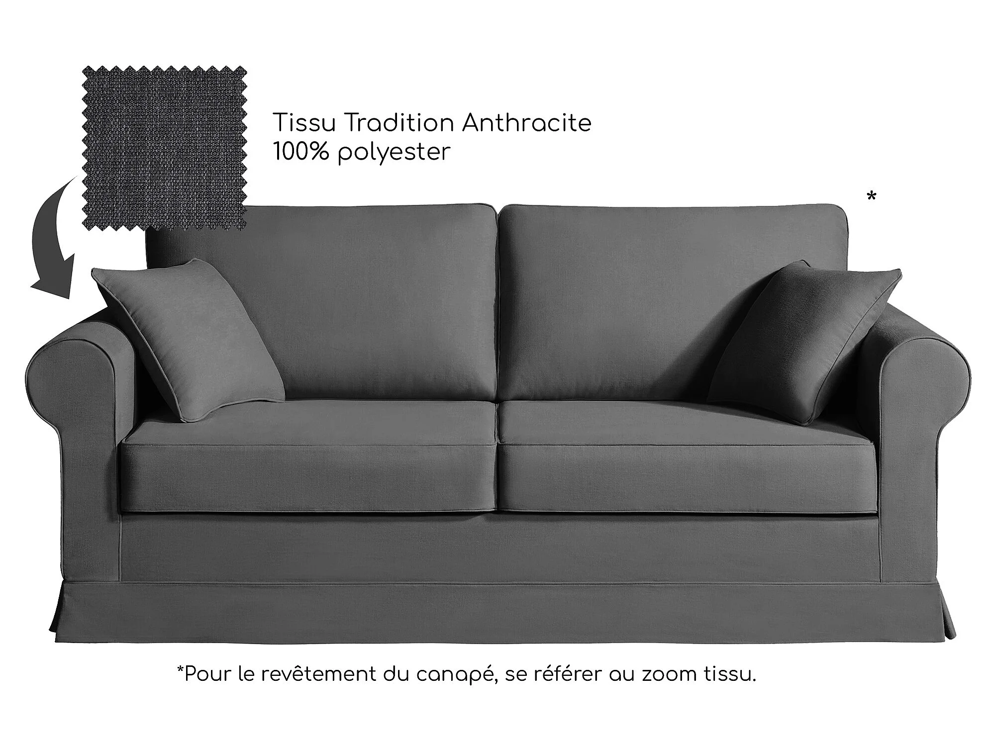 Canapé 3 pl COLME 190 cm fixe tissu Tradition Anthracite - 100% déhoussable - Fab. France
