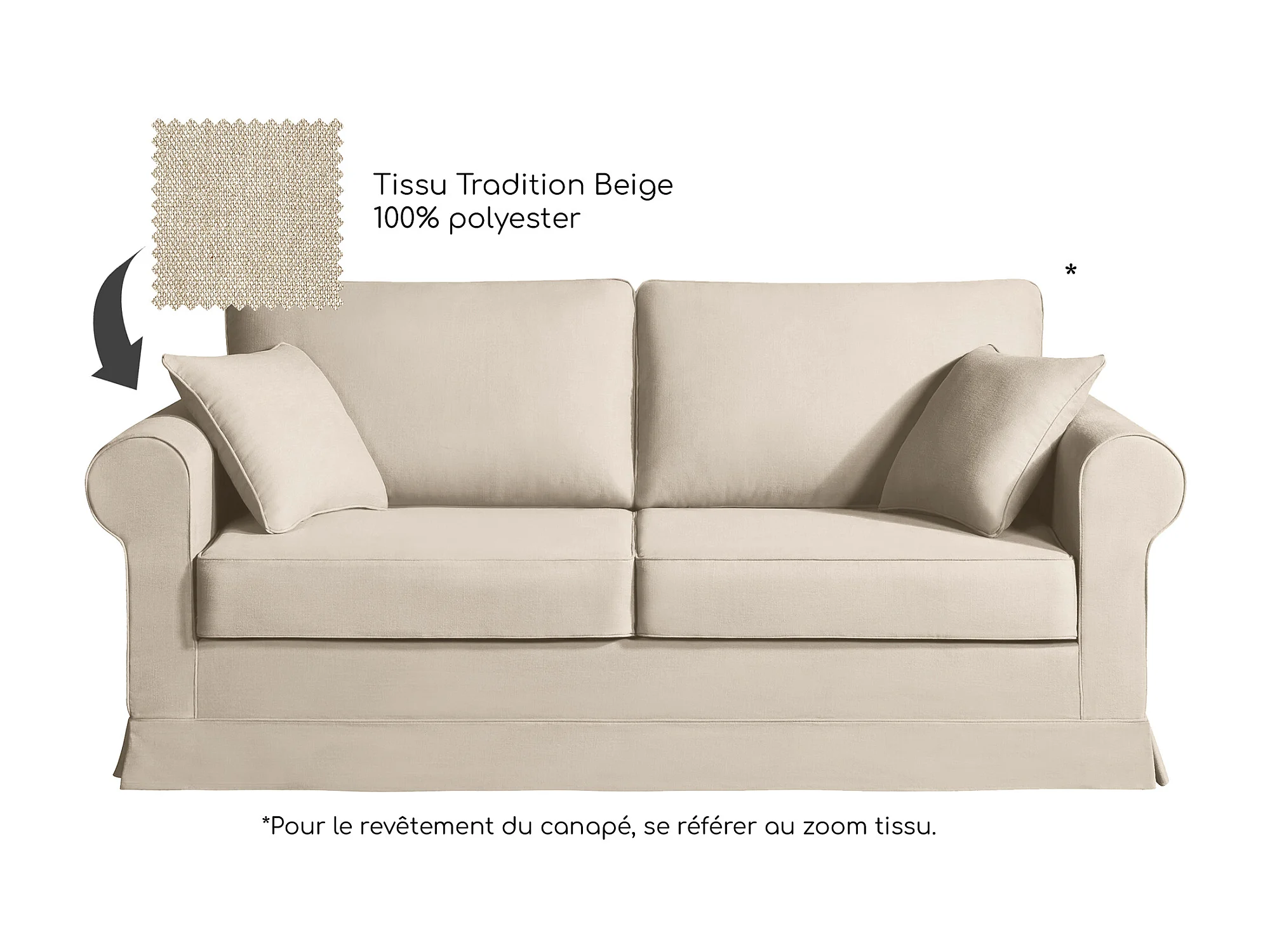 Canapé 3 pl COLME 190 cm fixe tissu Tradition Beige - 100% déhoussable - Fab. France