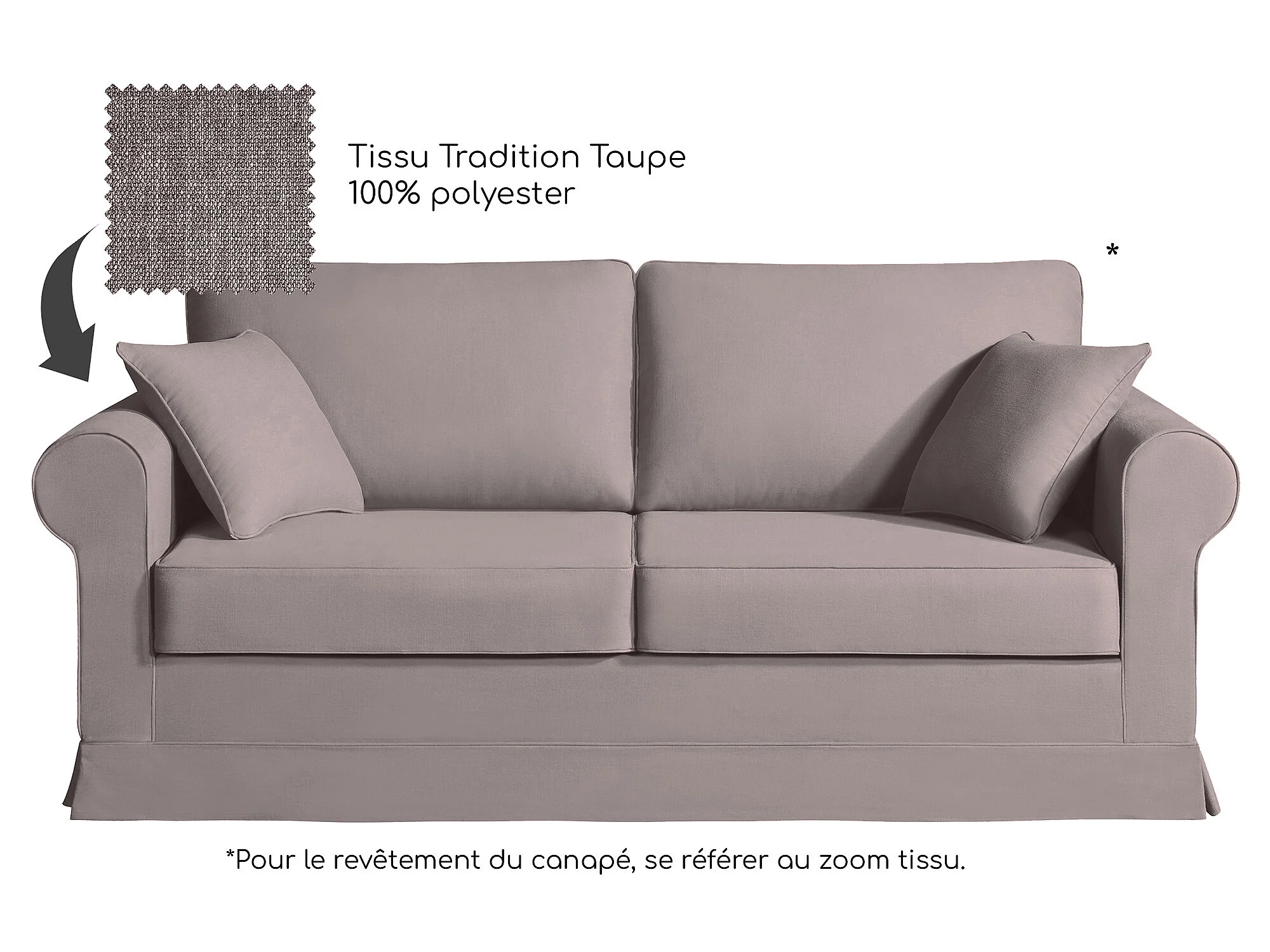 Canapé 3 pl COLME 190 cm fixe tissu Tradition Taupe - 100% déhoussable - Fab. France