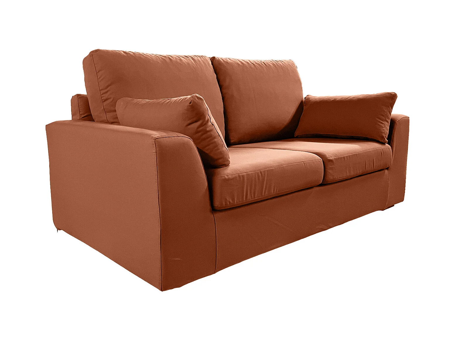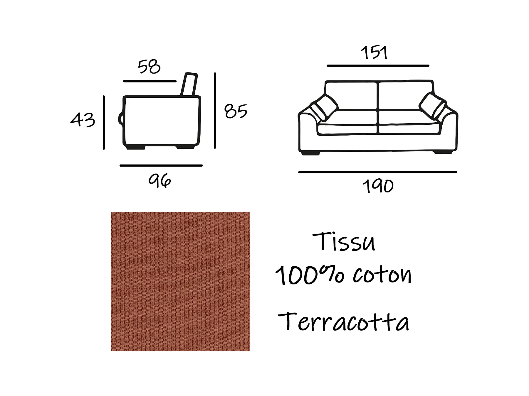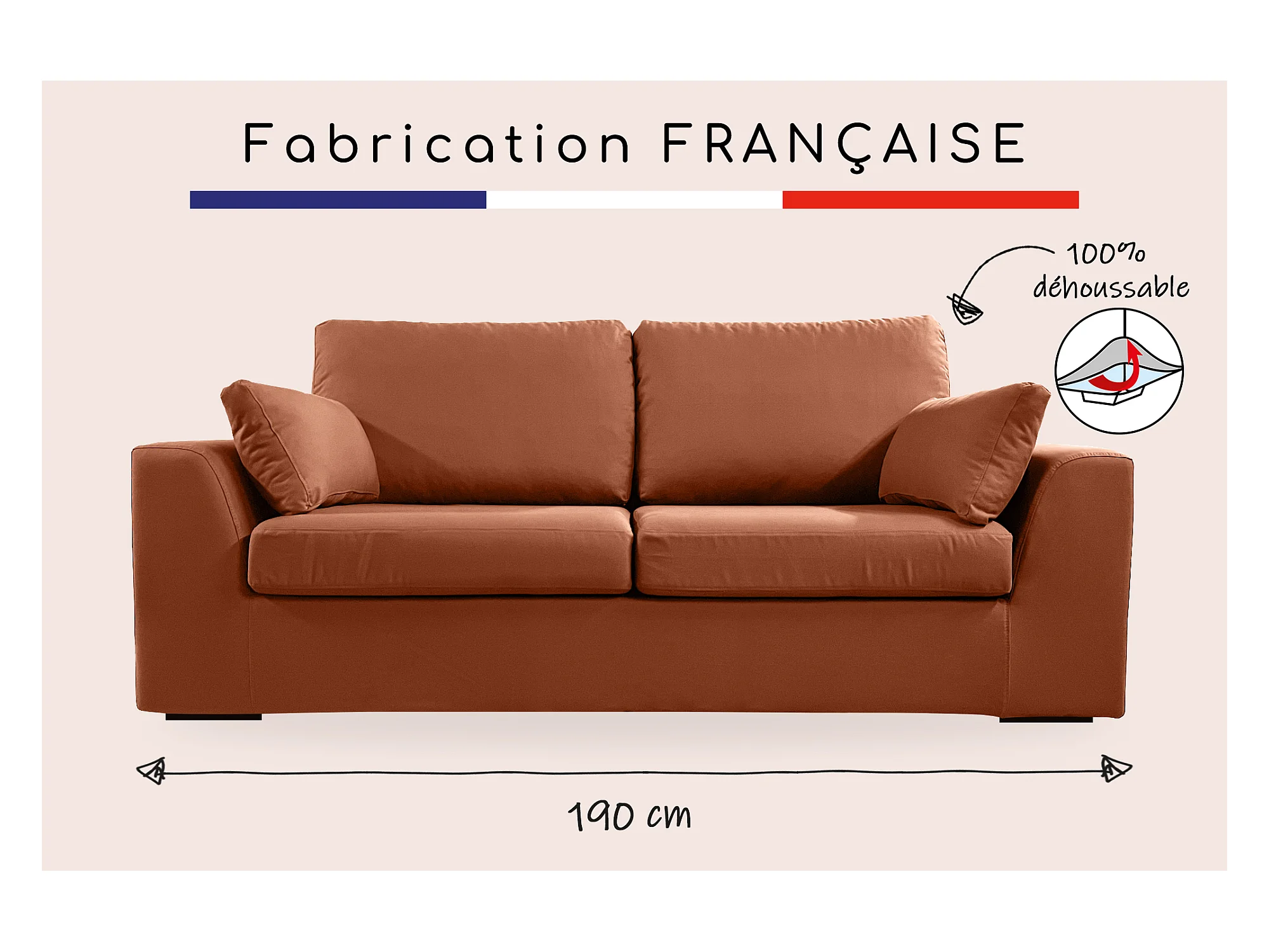 Canapé 3 pl TRESSIN 170 cm fixe tissu coton Terracotta - 100% déhoussable - Fab. France