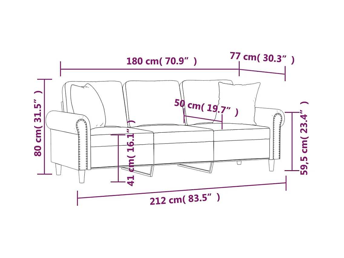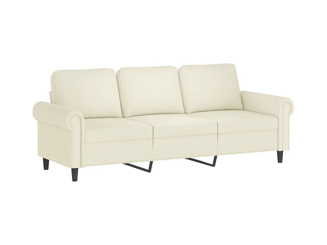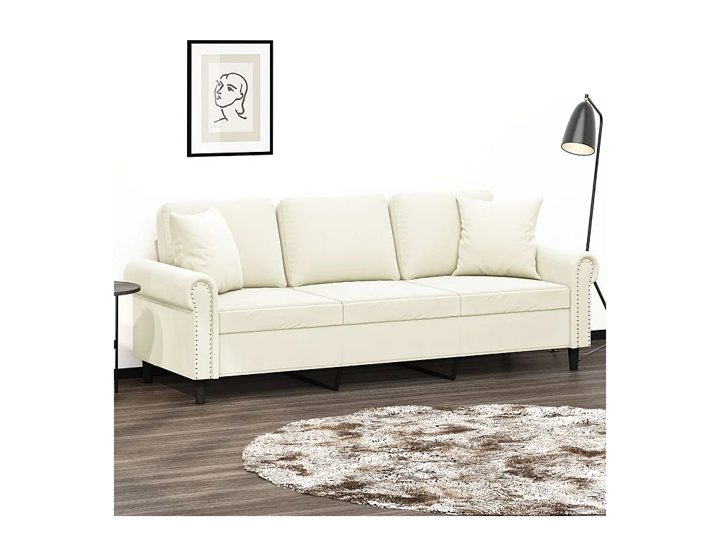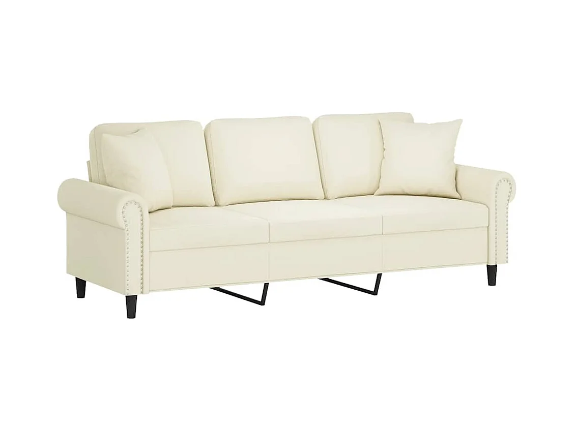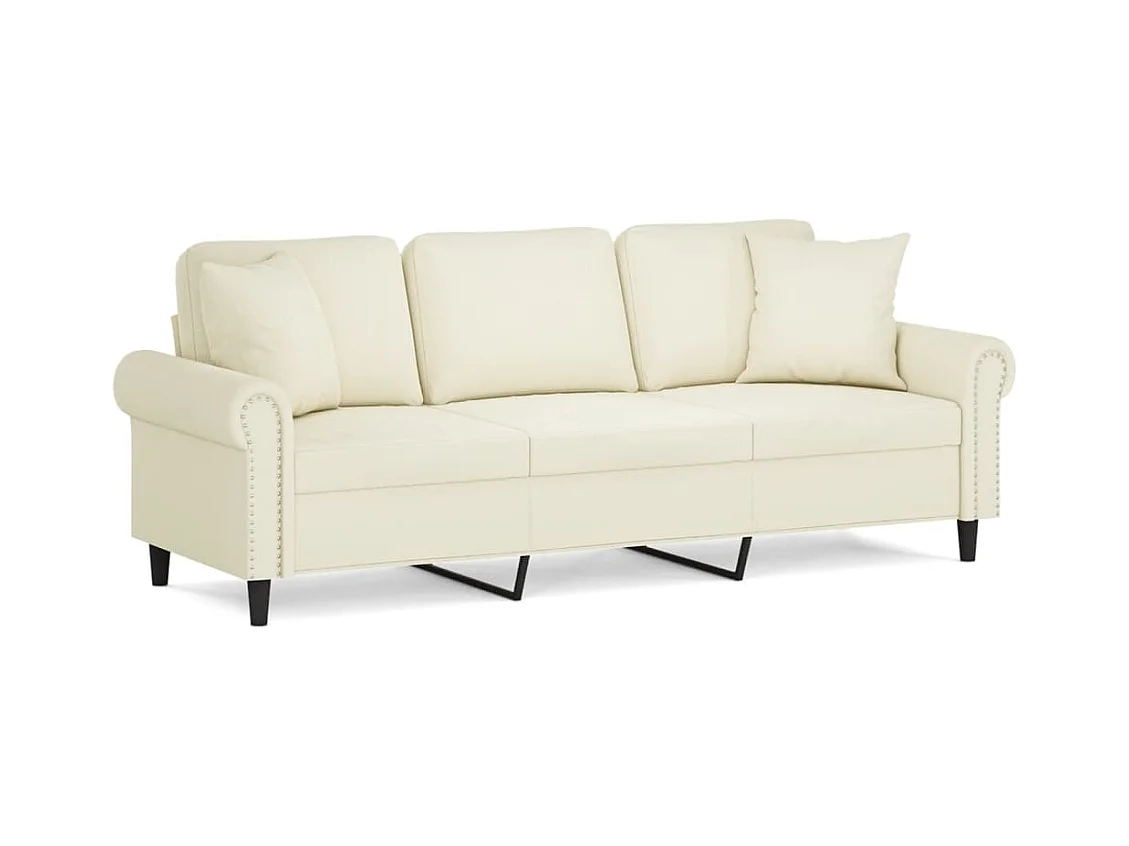Canapé 3 places avec oreillers décoratifs crème 180 cm velours