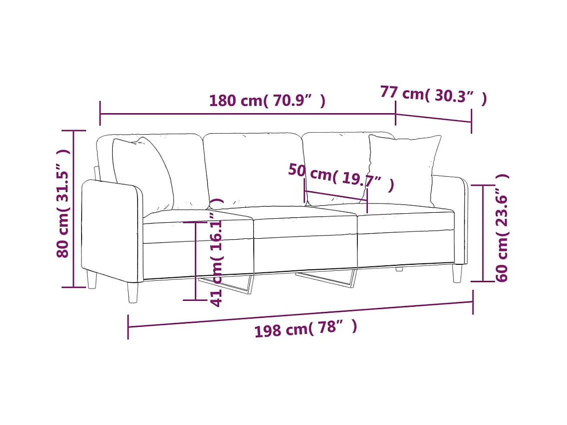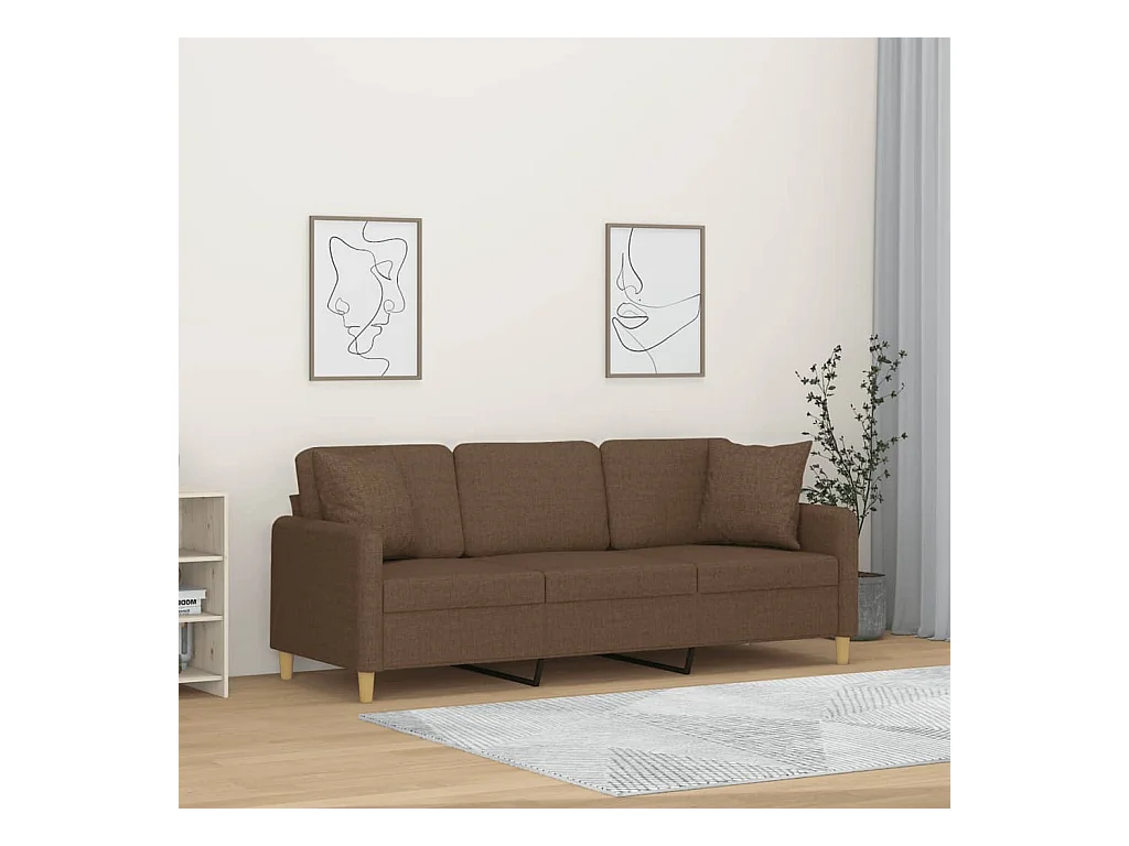 Canapé 3 places avec oreillers décoratifs marron 180 cm tissu