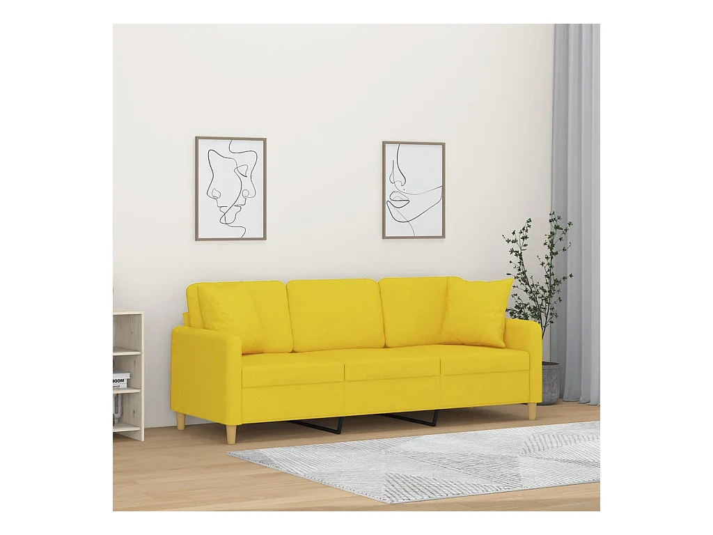 Canapé 3 places avec oreillers jaune clair 180 cm tissu