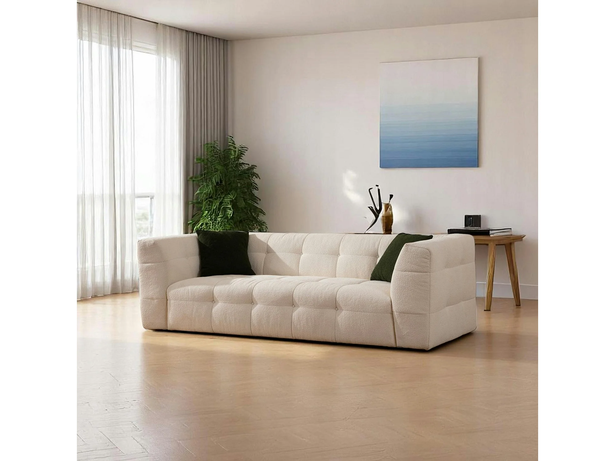 Canapé 3 places beige capitonné RAVELLO