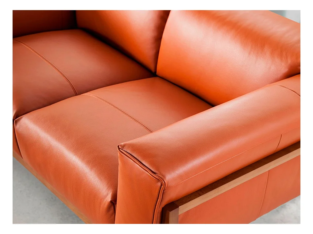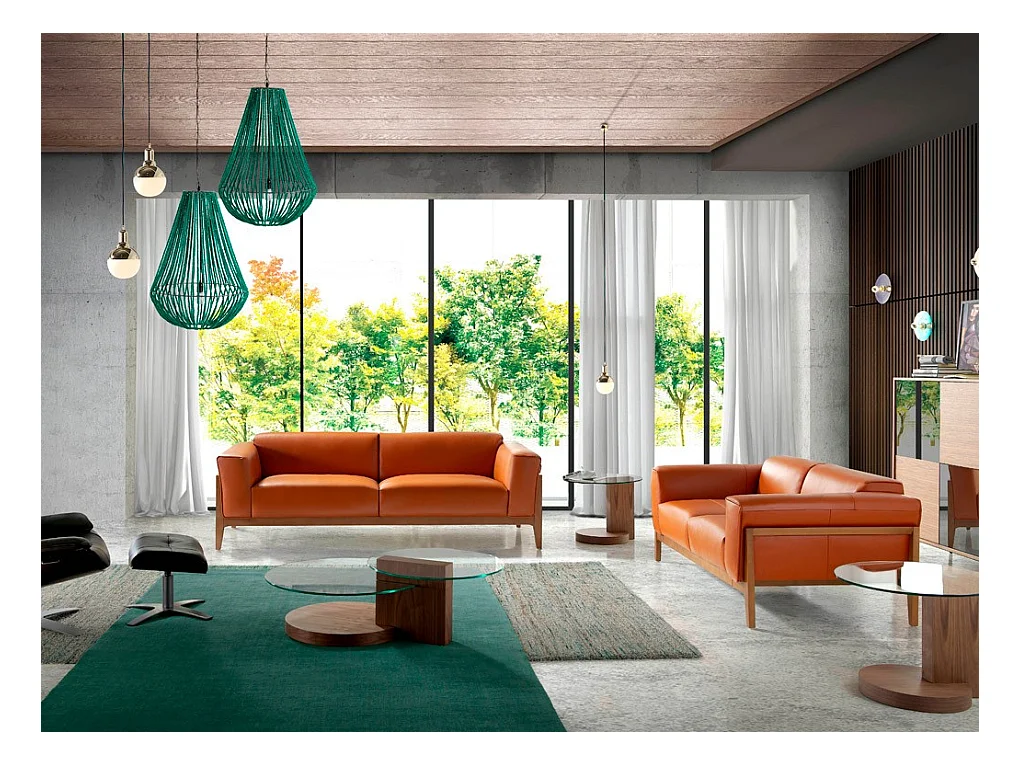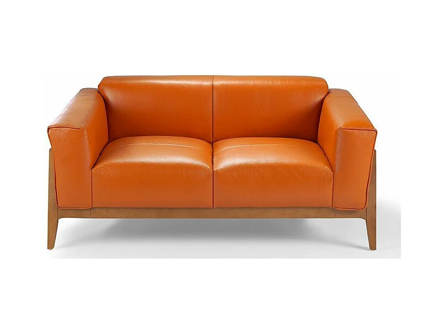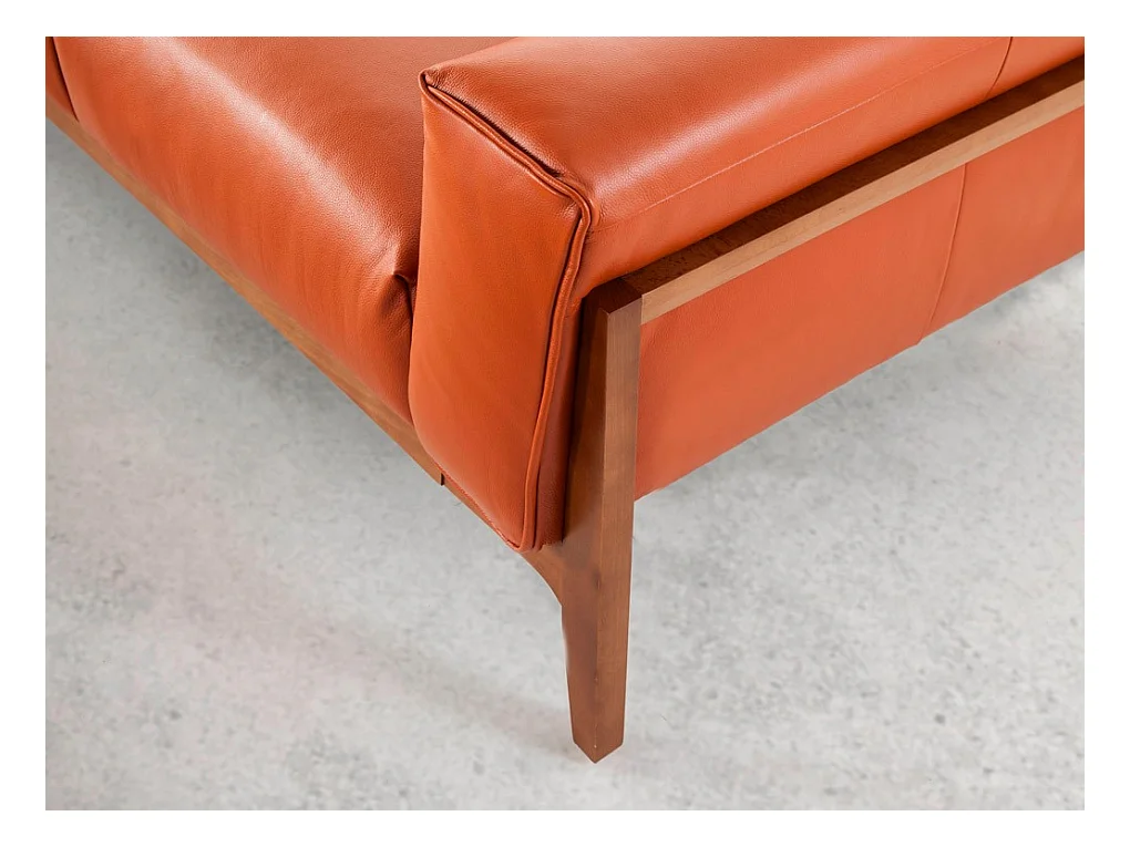 Canapé 3 places bois noyer et cuir Kilane-Couleur Aqua 82 Taupe