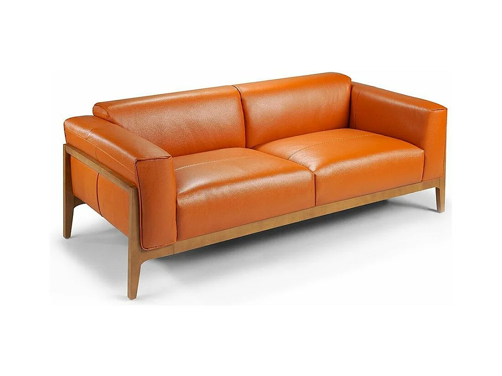 Canapé 3 places bois noyer et cuir Kilane-Couleur Aqua 90 Noir