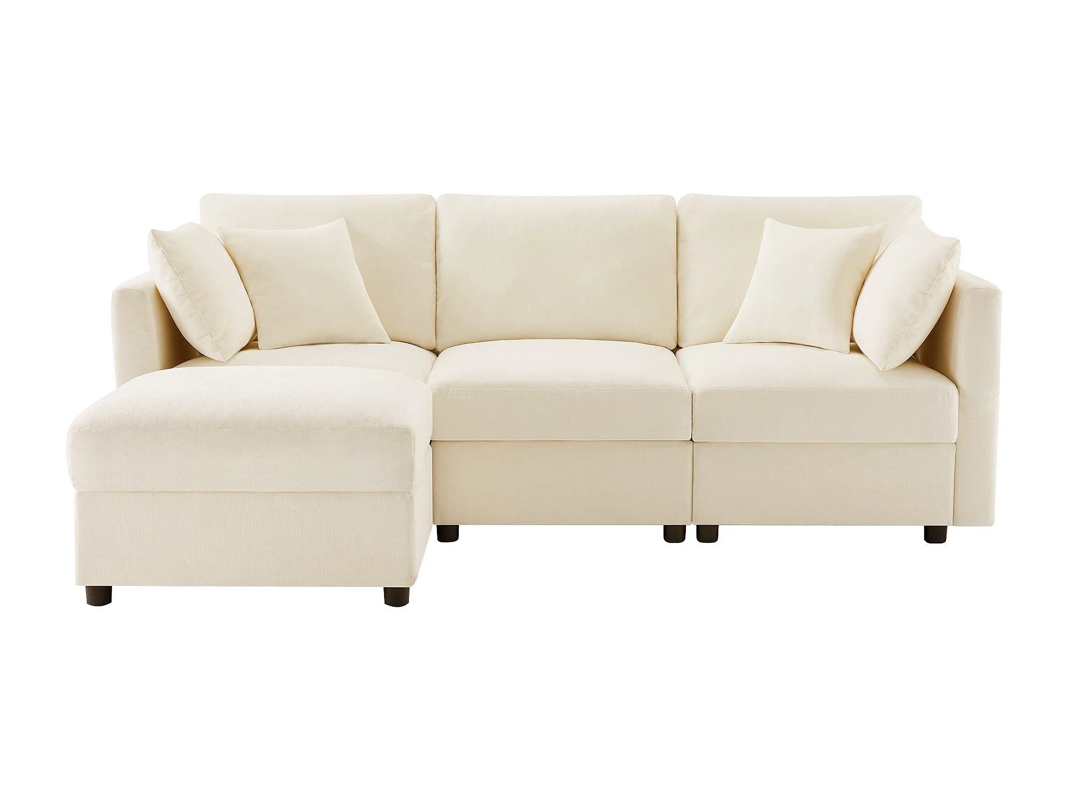 Canapé 3 places, canapé d'angle avec repose-pieds et accoudoirs réglables - chenille beige
