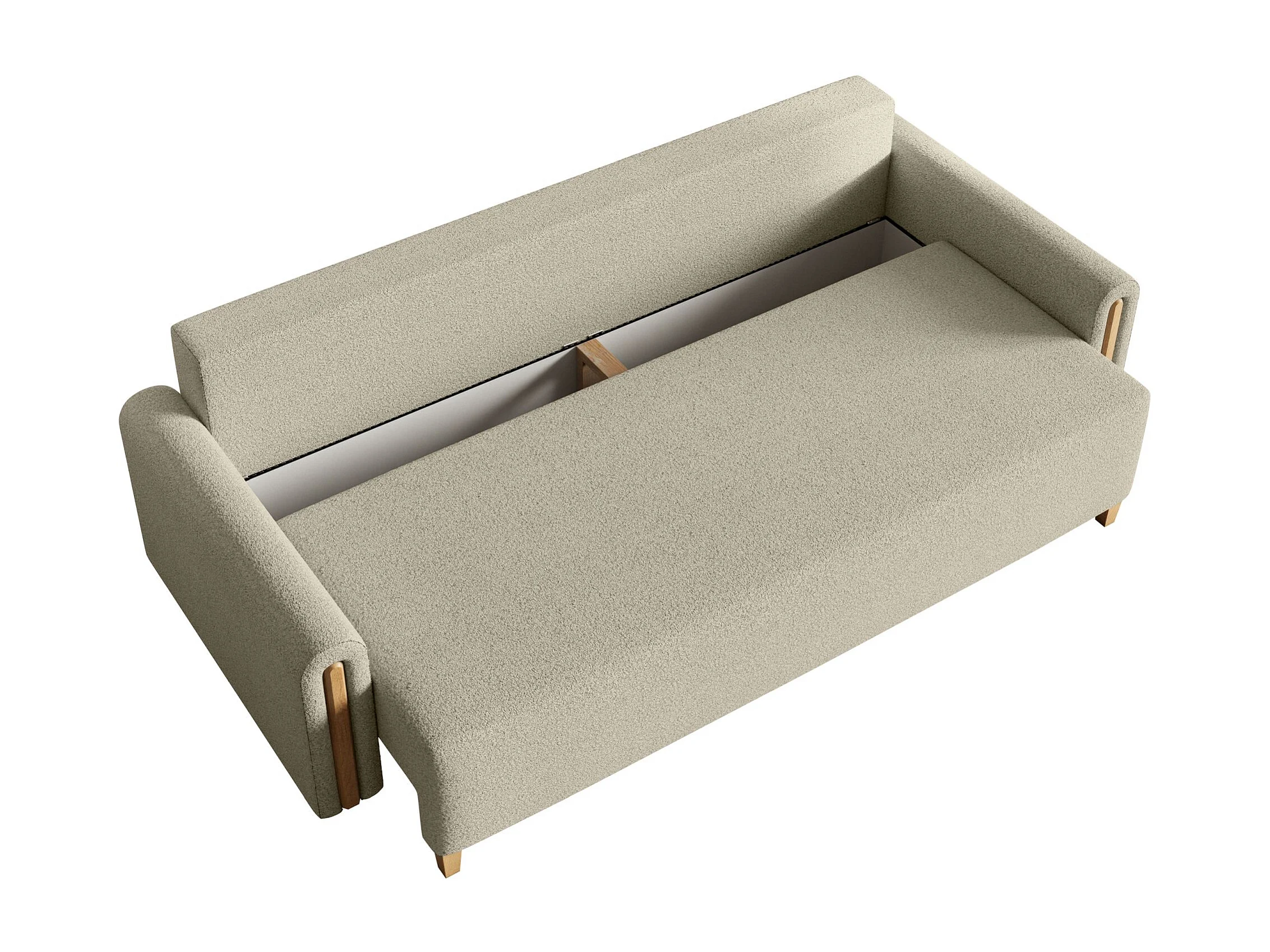 Canapé 3 places convertible avec coffre - en bouclette - beige clair - MAJLA