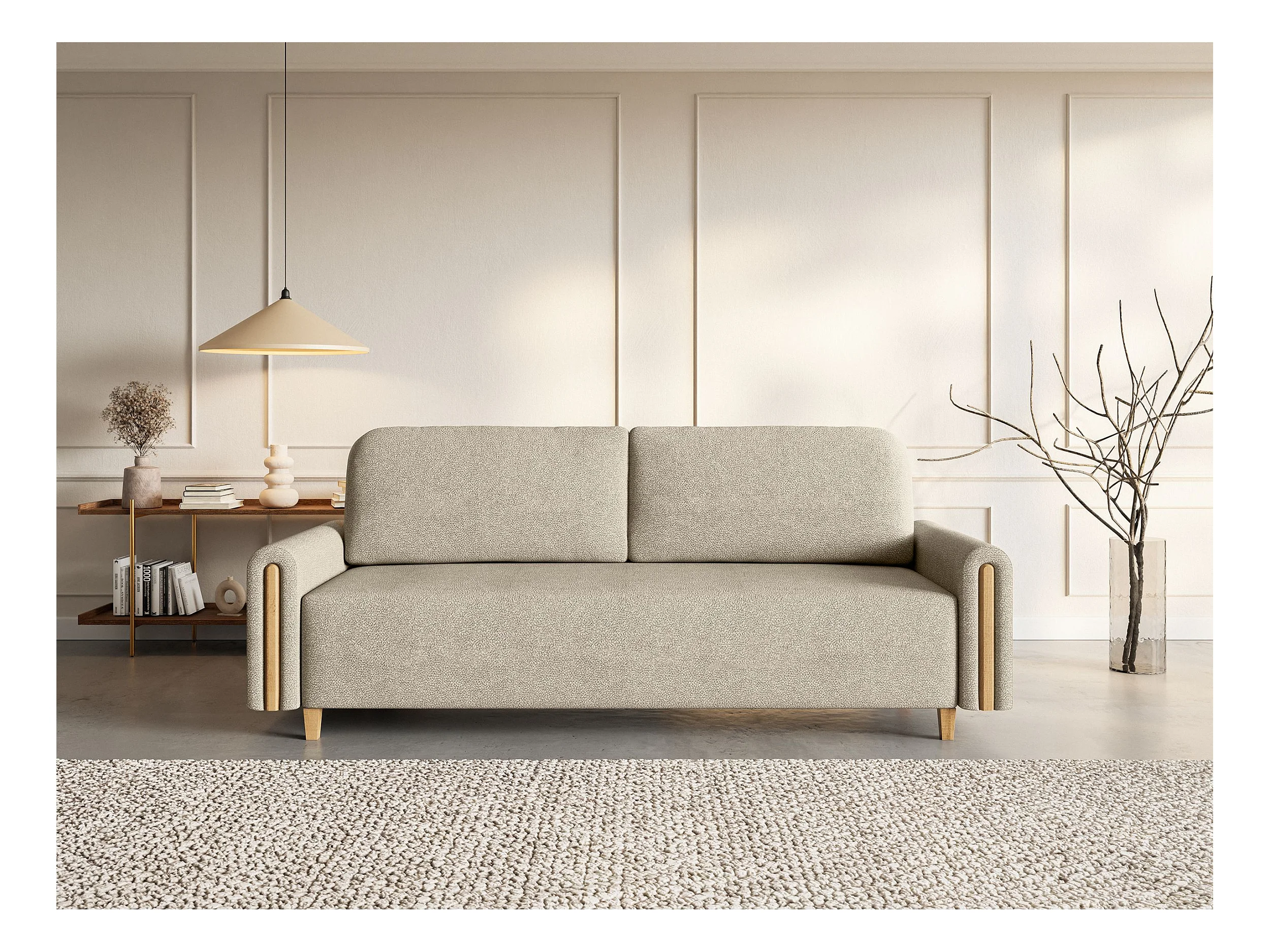 Canapé 3 places convertible avec coffre - en tissu déperlant - beige - MAJLA