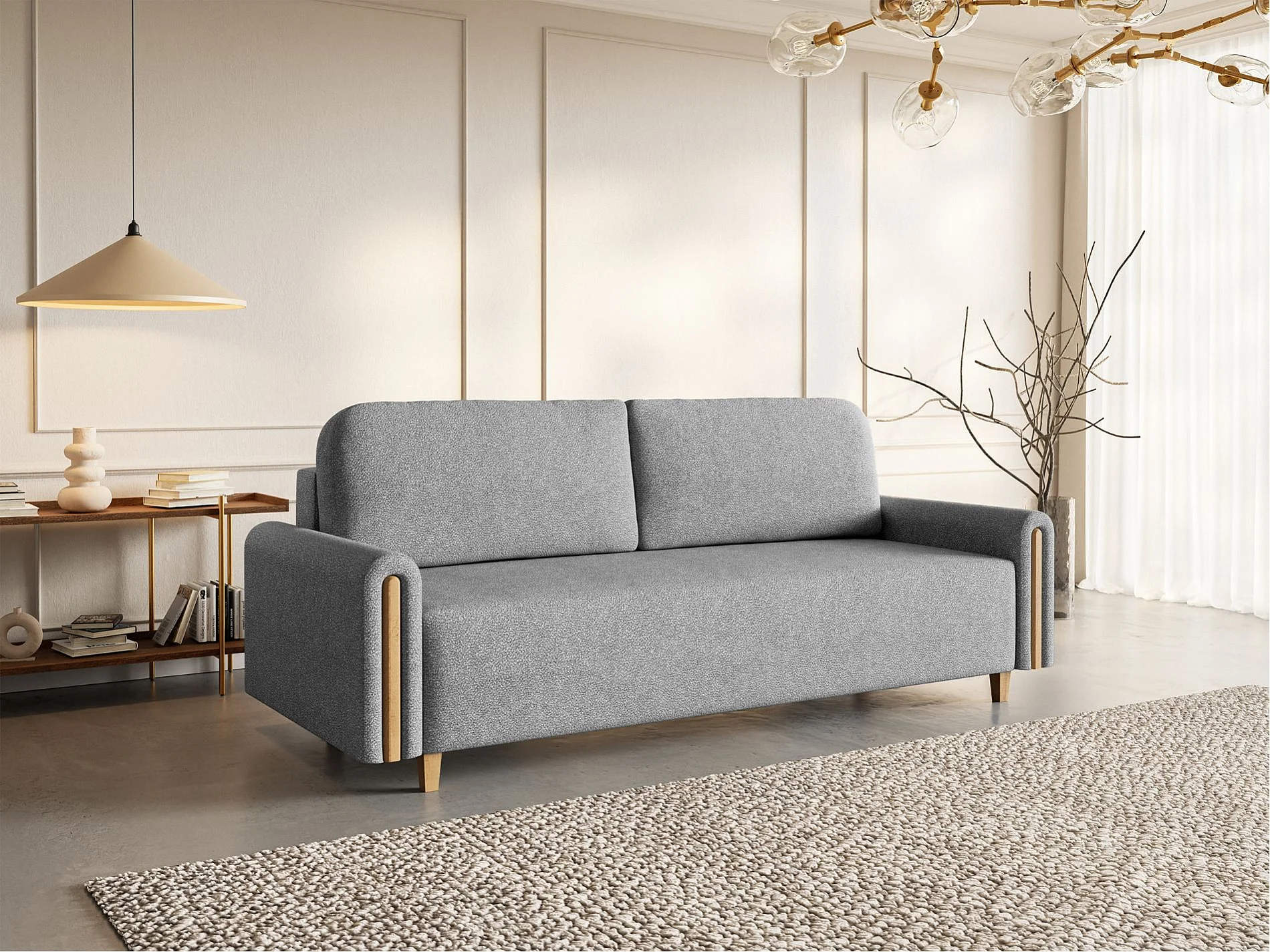 Canapé 3 places convertible avec coffre - en tissu déperlant - gris - MAJLA