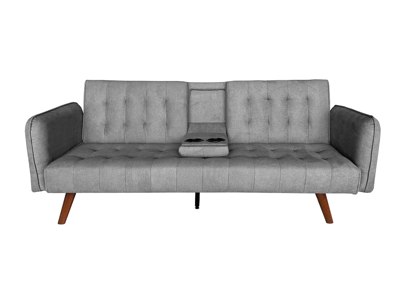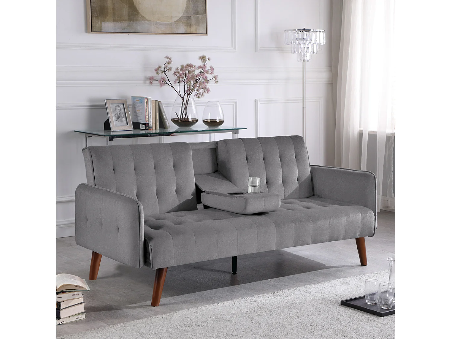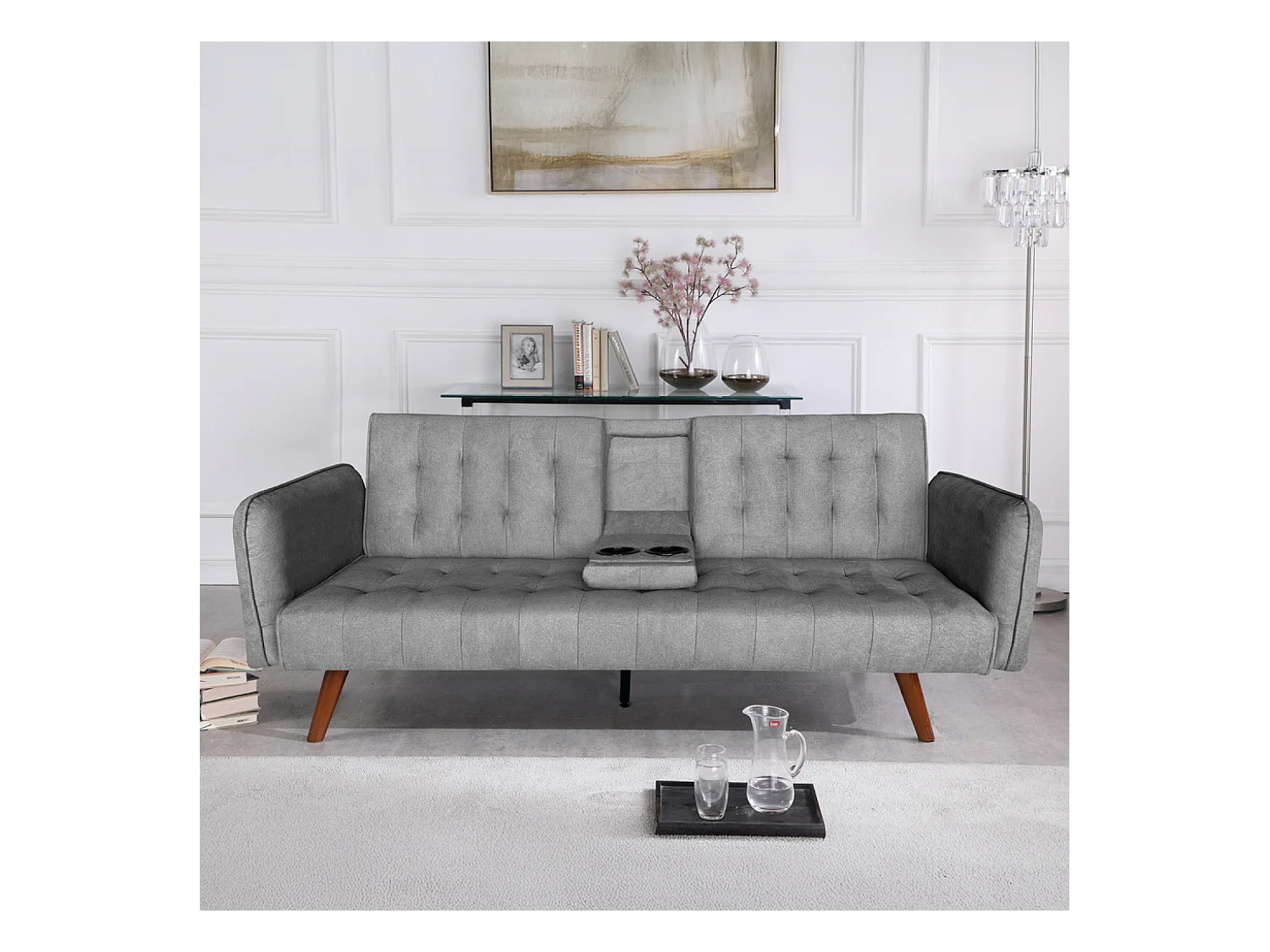 Canapé 3 places convertible en velours avec tablette centrale rabattable gris INVERNESS