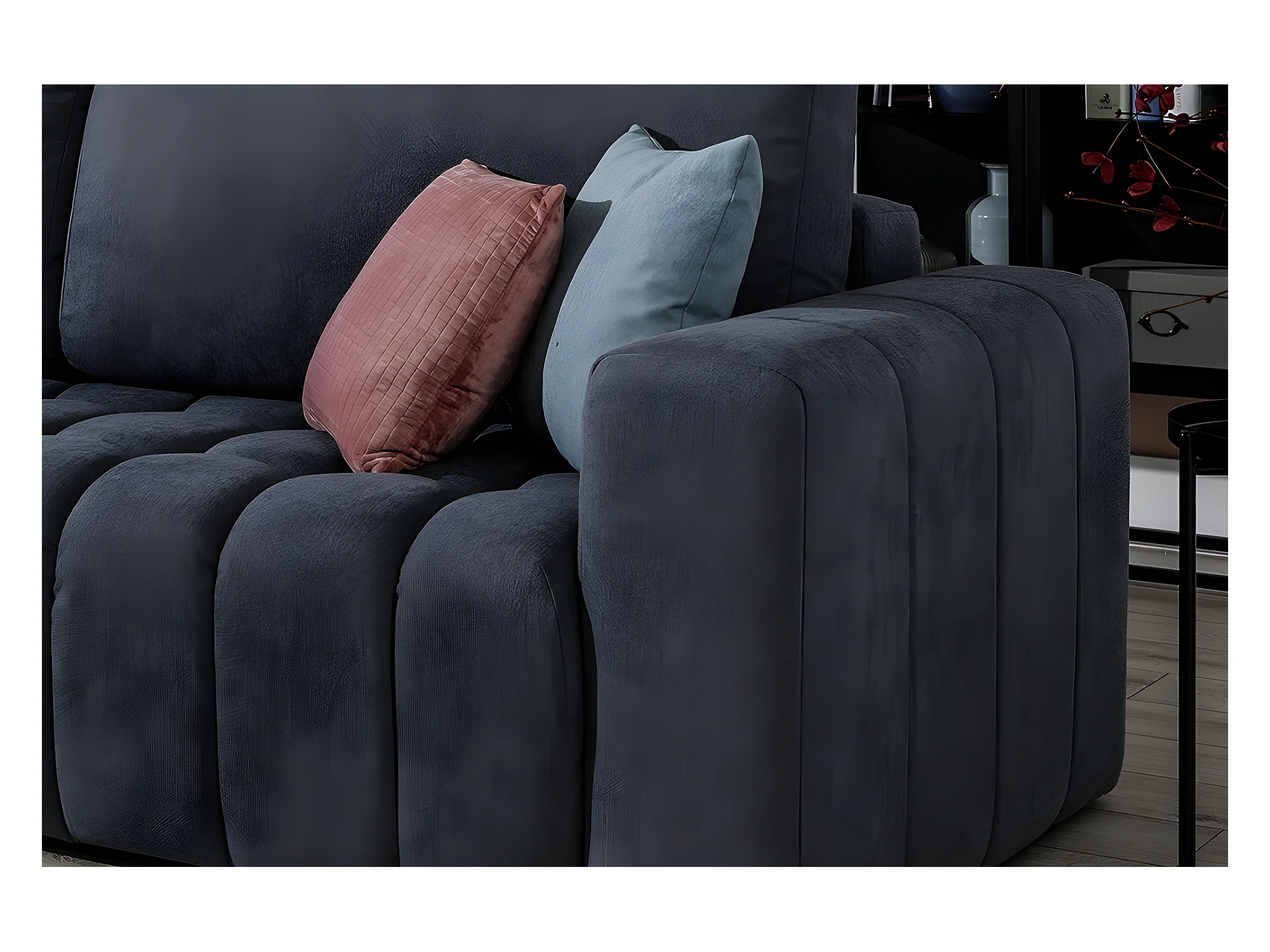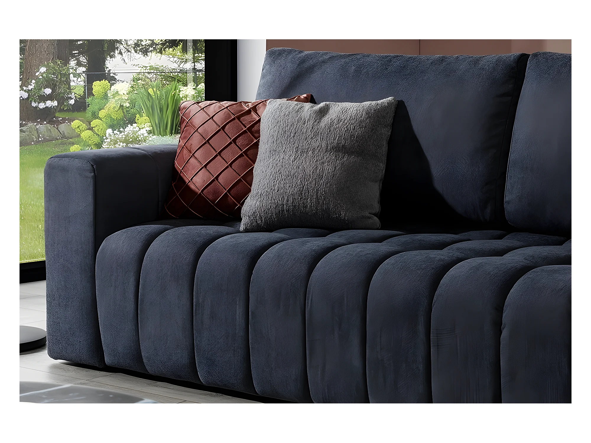 Canapé 3 places convertible et espace de rangement - Gris foncé - en tissu de qualité luxe, LAZIO