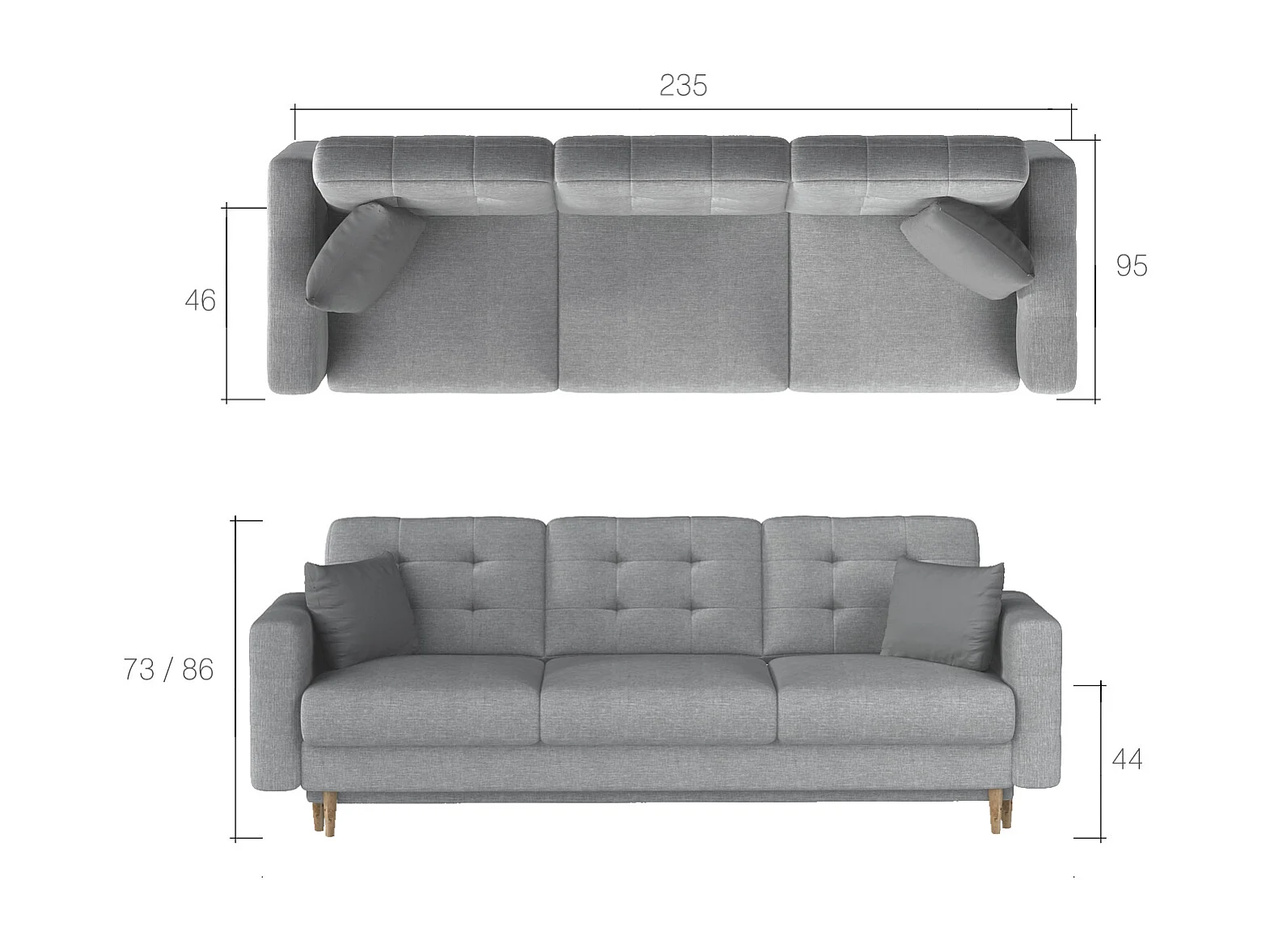 Canapé 3 places convertible matelassé tissu noir Anska 235cm