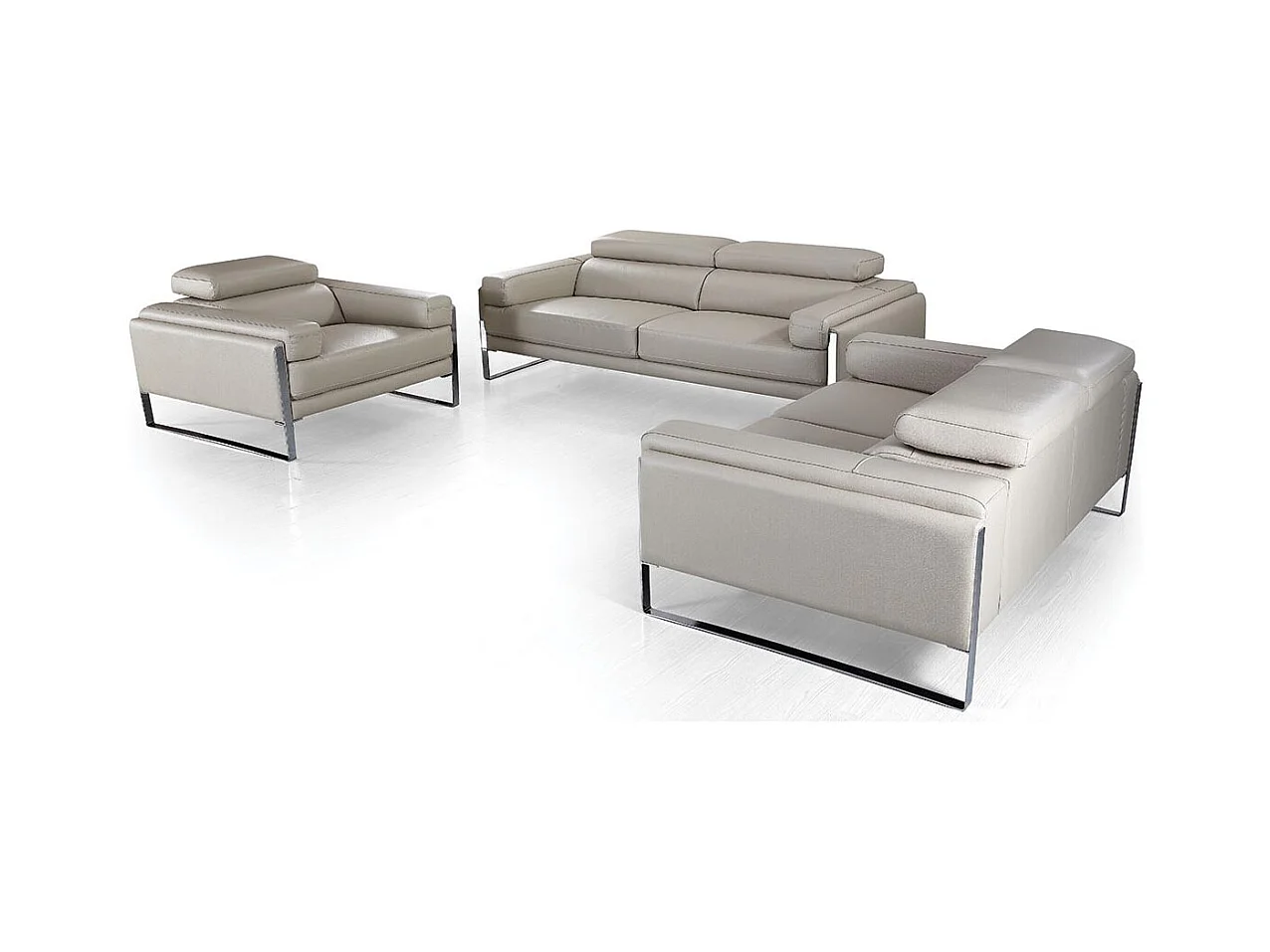 Canapé 3 places Cuir ALIYAH Beige - Angle Droit