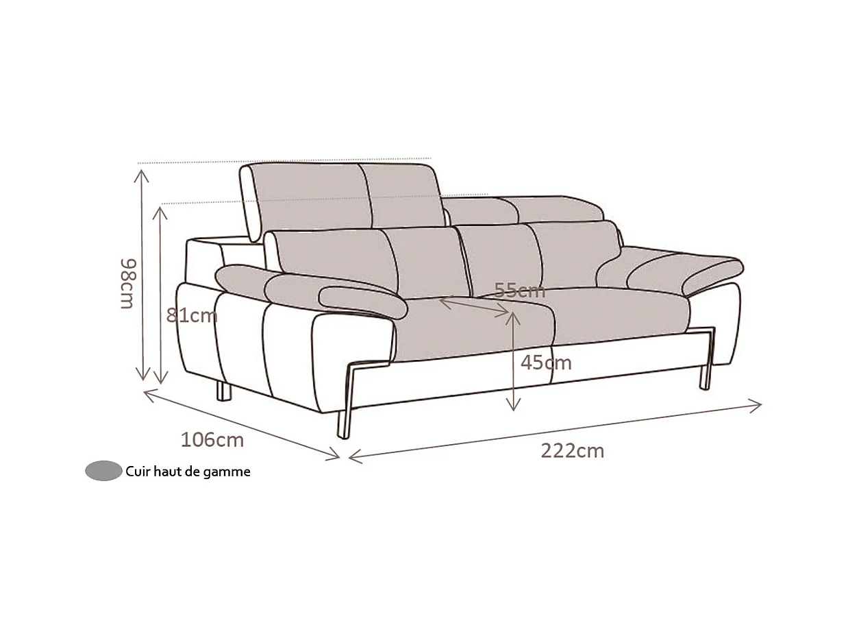 Canapé 3 places Cuir KARE Gris - Angle Droit
