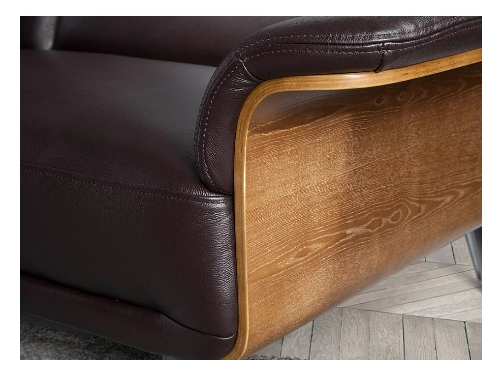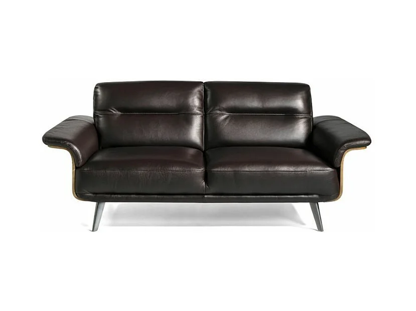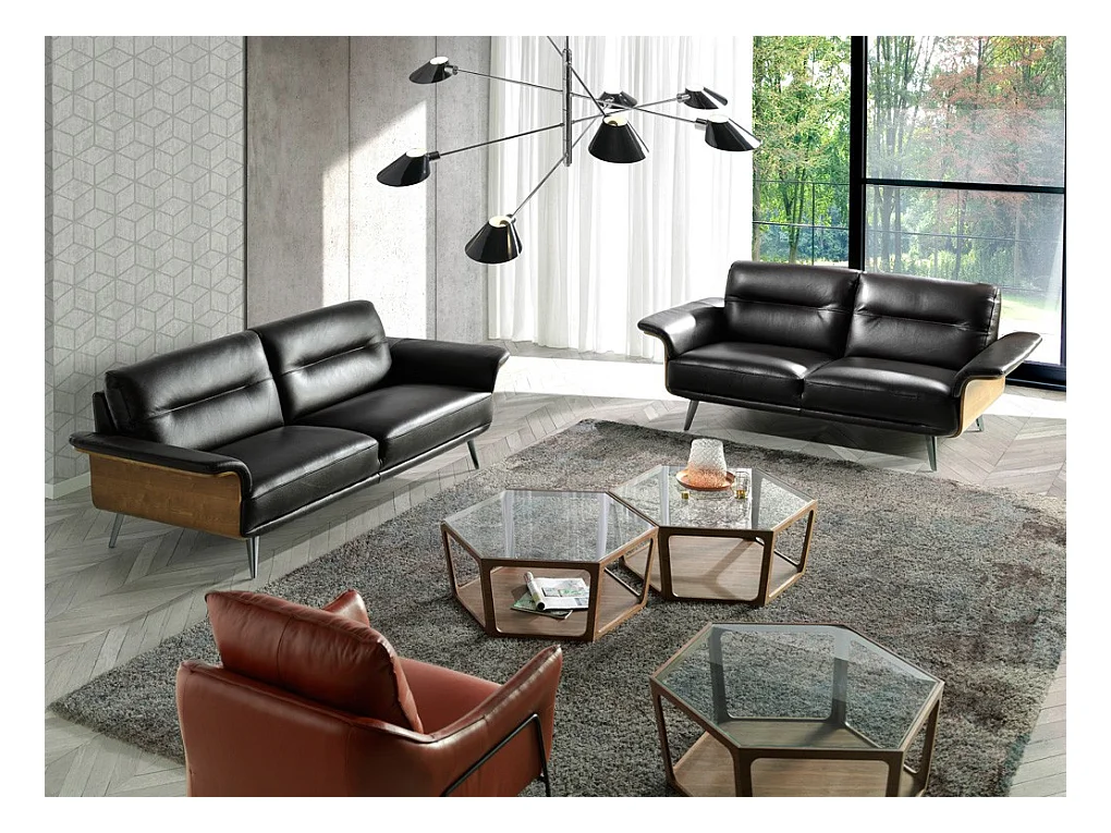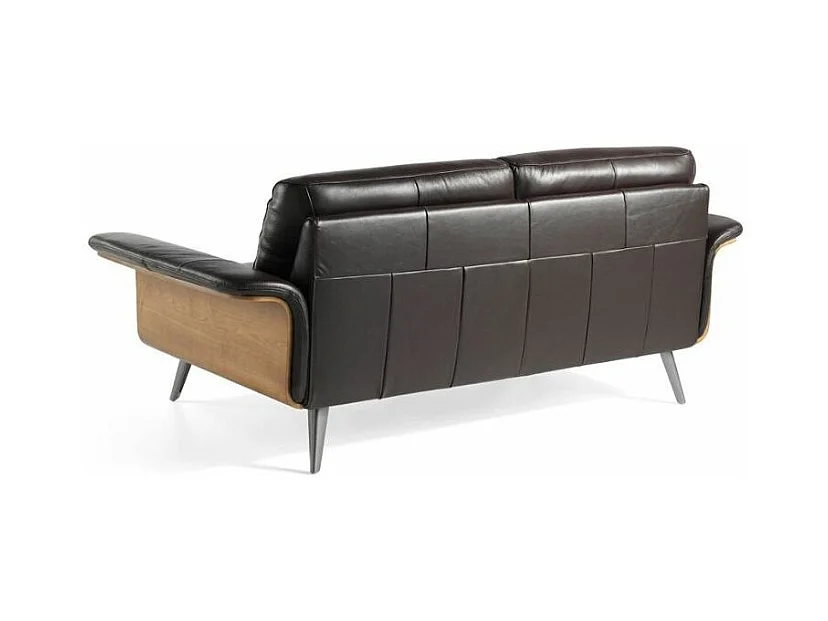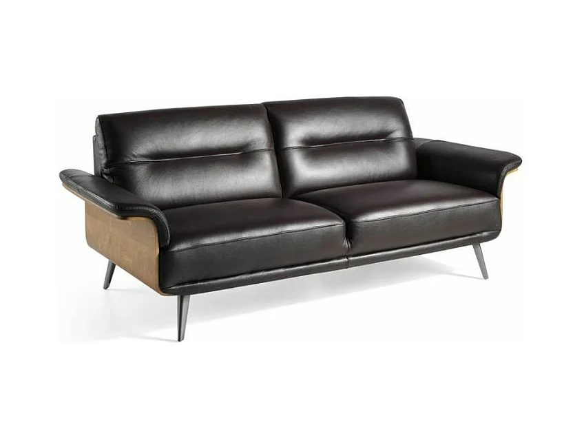 Canapé 3 places cuir noir bois plaqué noyer et pieds acier inoxydable Alamo