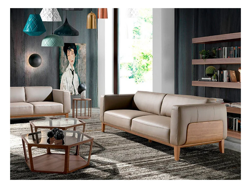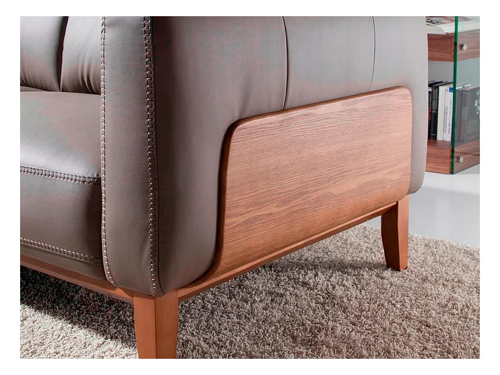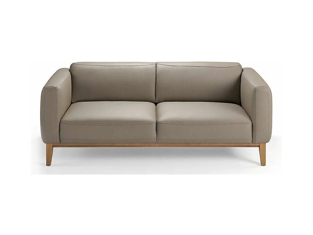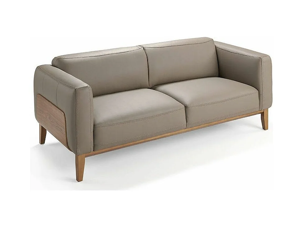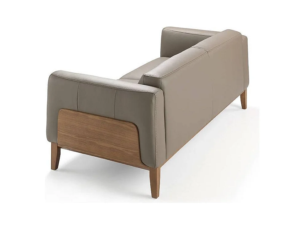 Canapé 3 places cuir taupe et pieds bois pin Kina-Couleur Cuir Piel noir