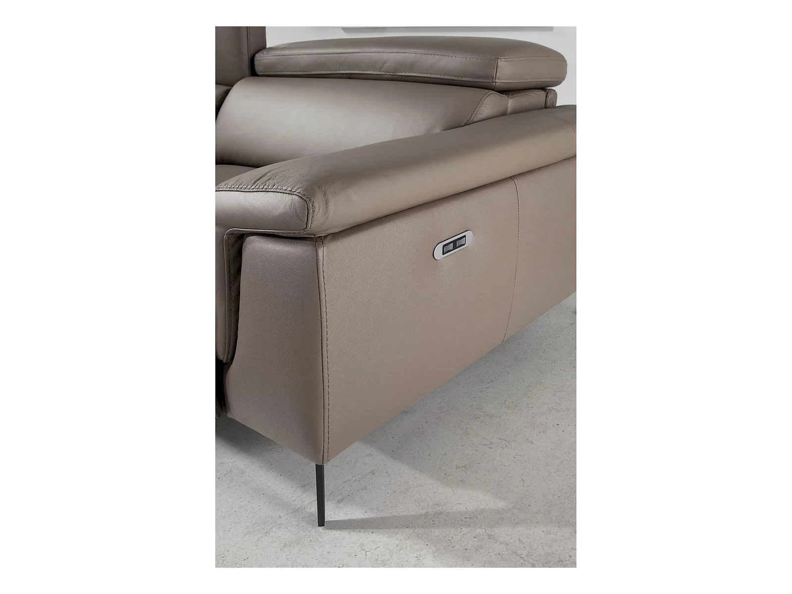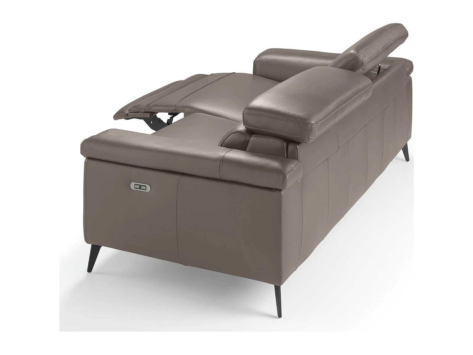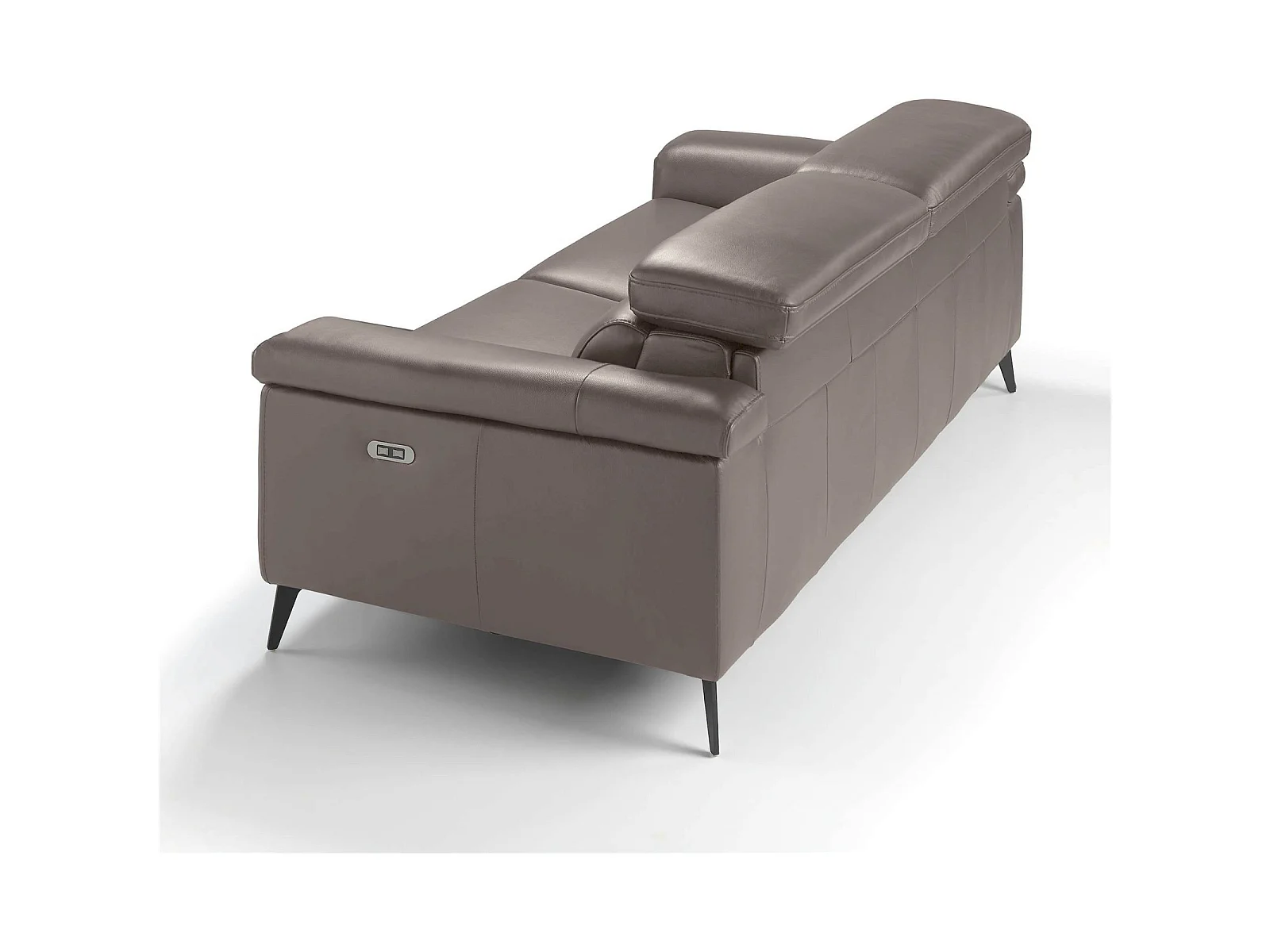 Canapé 3 places cuir vachette simili structure bois appuis-tête articulés pieds acier peint