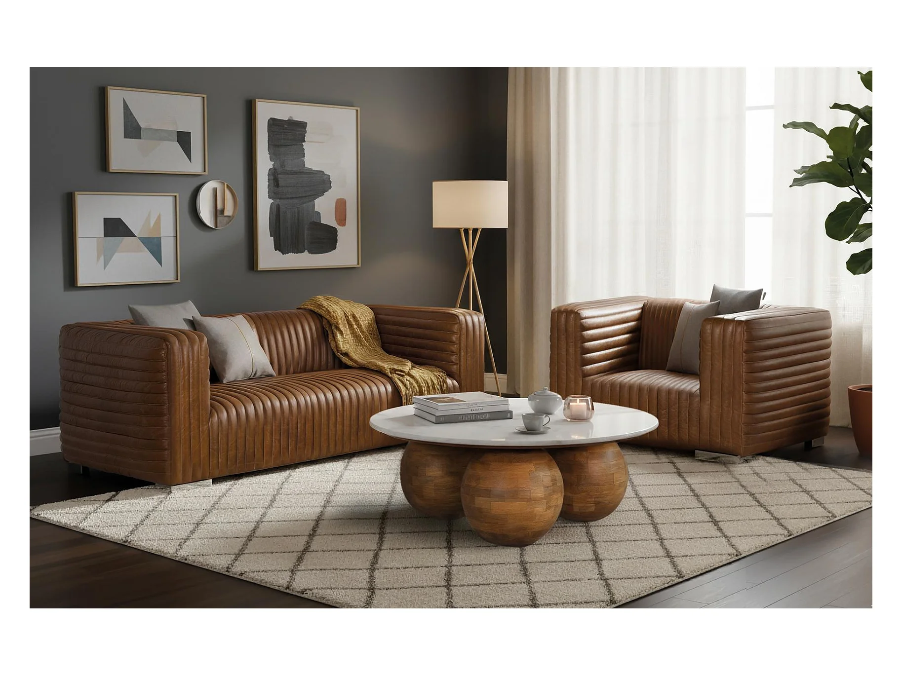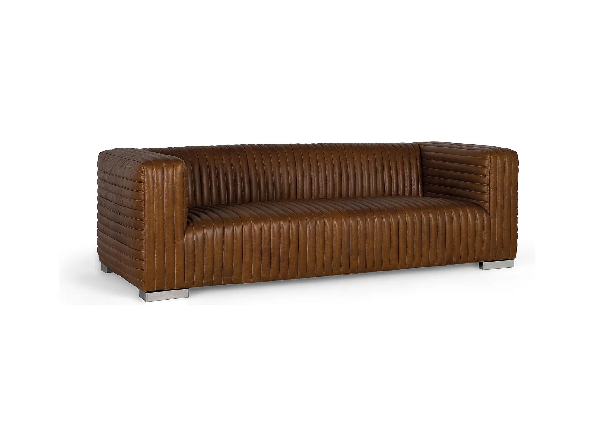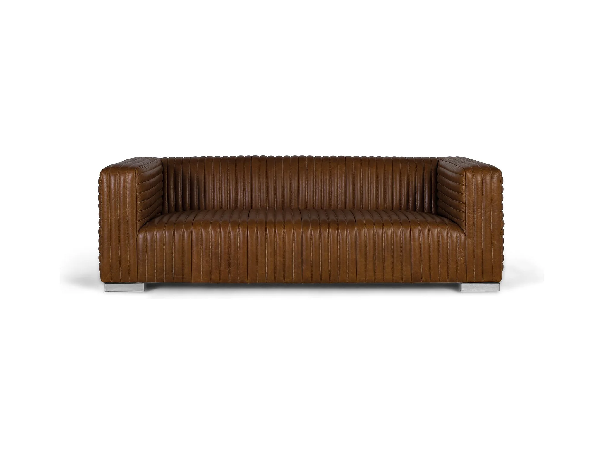 Canapé 3 places en cuir de style vintage avec pieds en acier