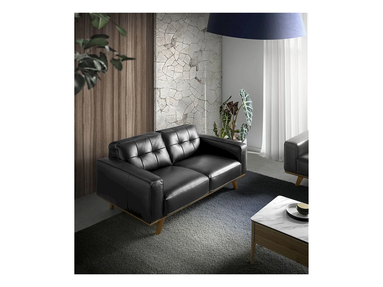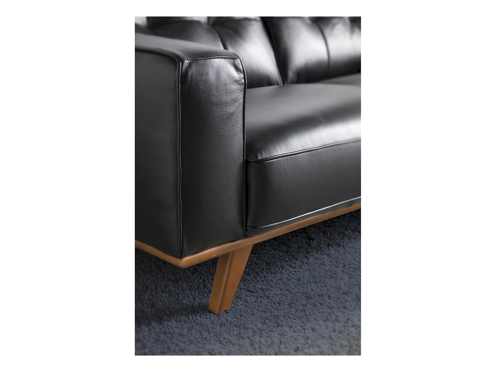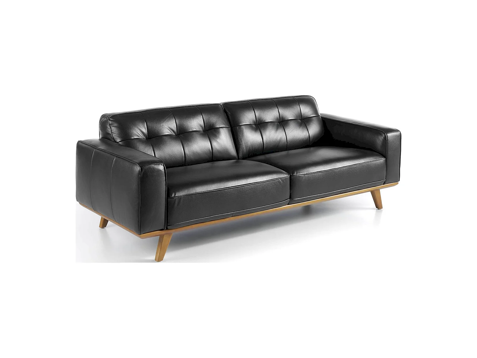 Canapé 3 places en cuir pieds bois massif de frêne