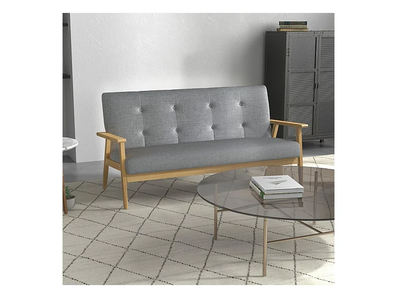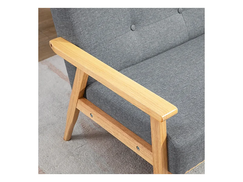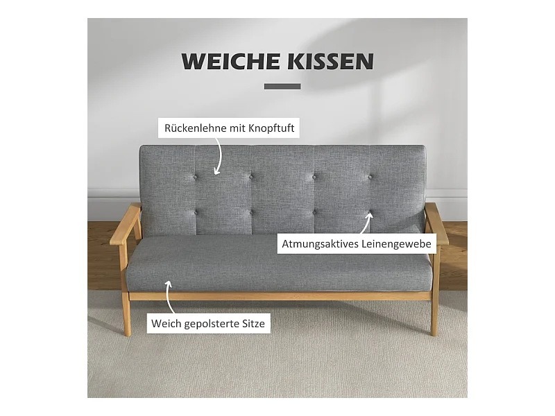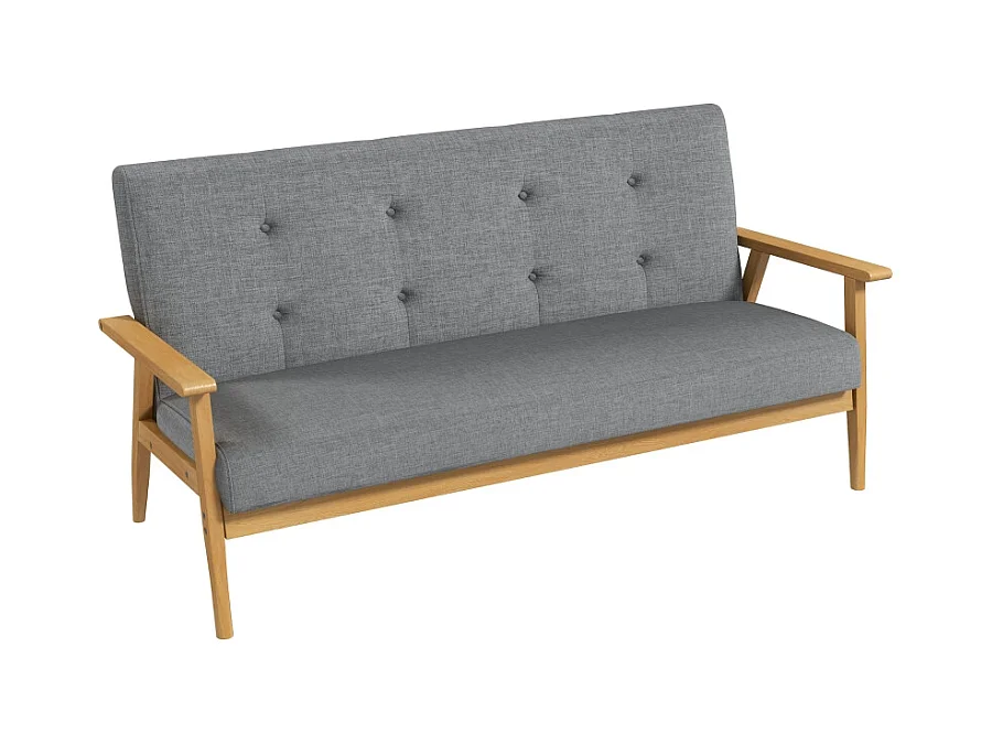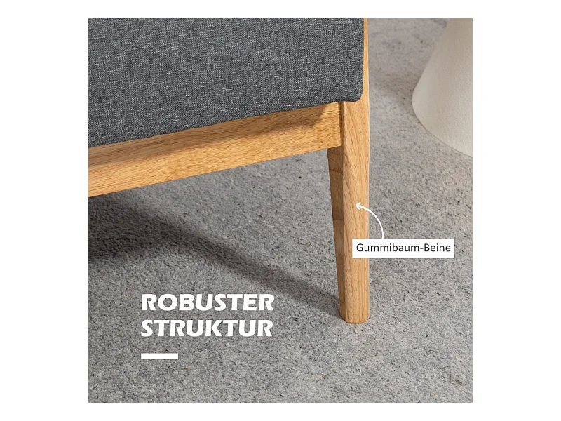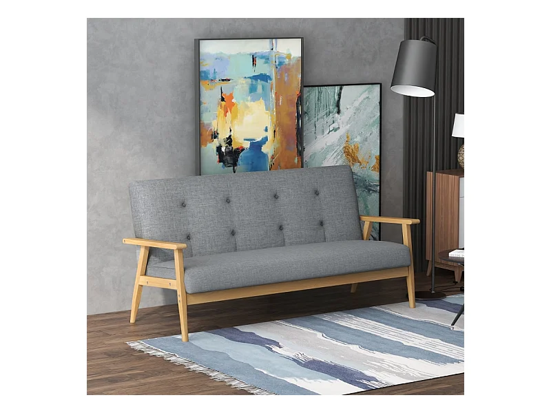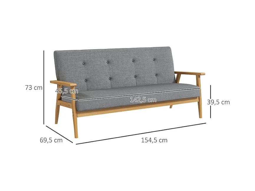 Canapé 3 places en lin, design moderne, bois d'hévéa, gris foncé (154.5x69.5x73cm)