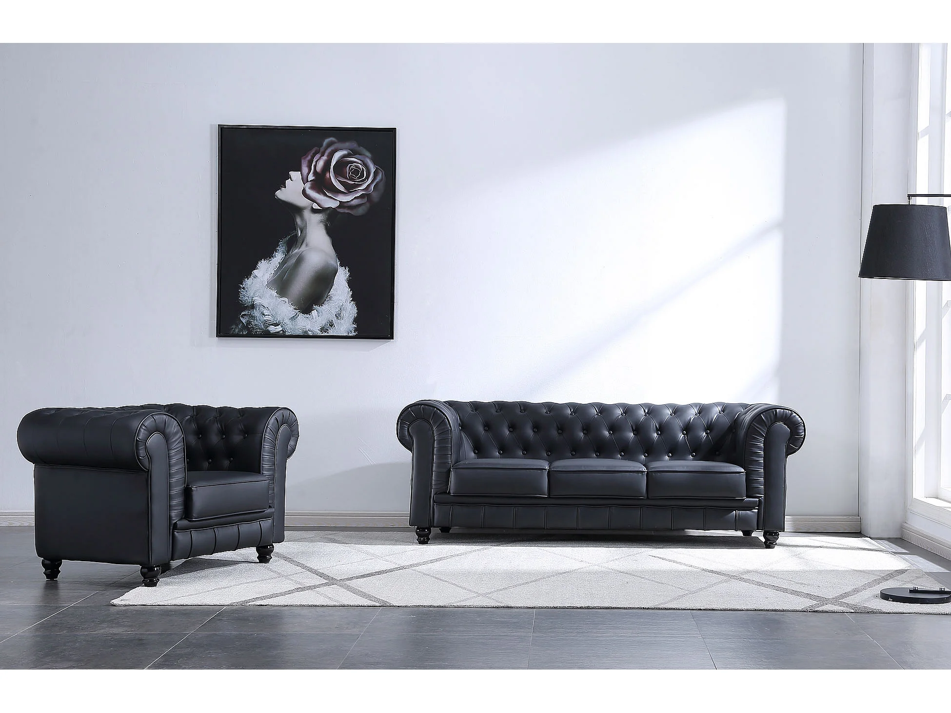 Canapé 3 places en simili-cuir coloris noir - Longueur 211 x profondeur 84 x hauteur 75 cm