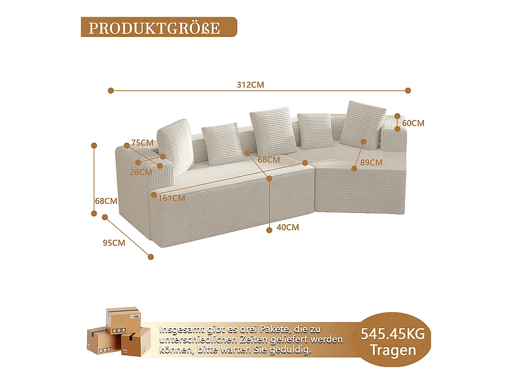 Canapé 3 places en tissu avec nuages Canapé combiné canapé modulaire emballage entièrement compressé sans montage blanc