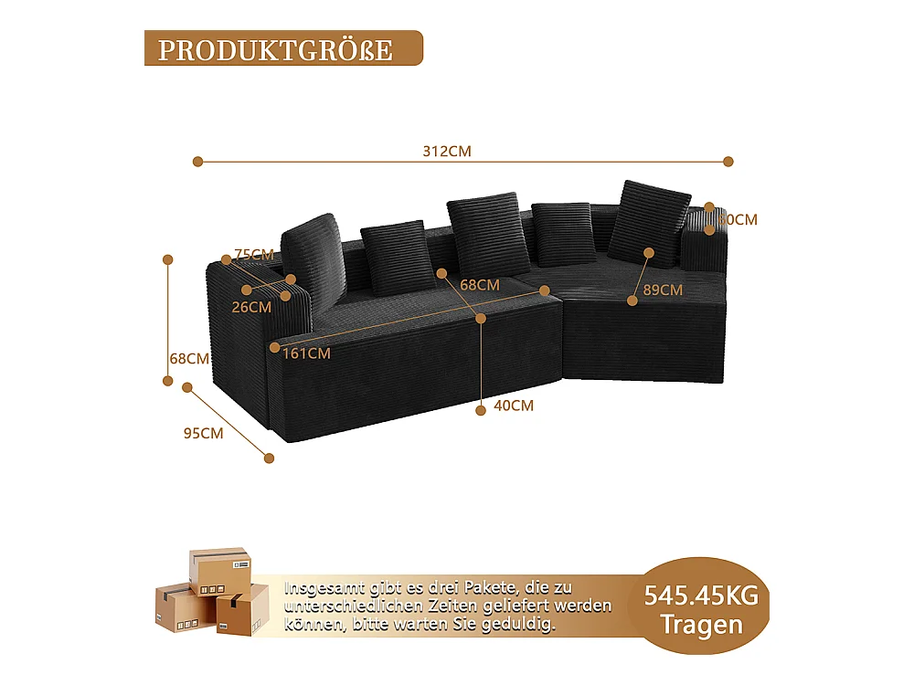 Canapé 3 places en tissu avec nuages Canapé combiné canapé modulaire emballage entièrement compressé sans montage noir