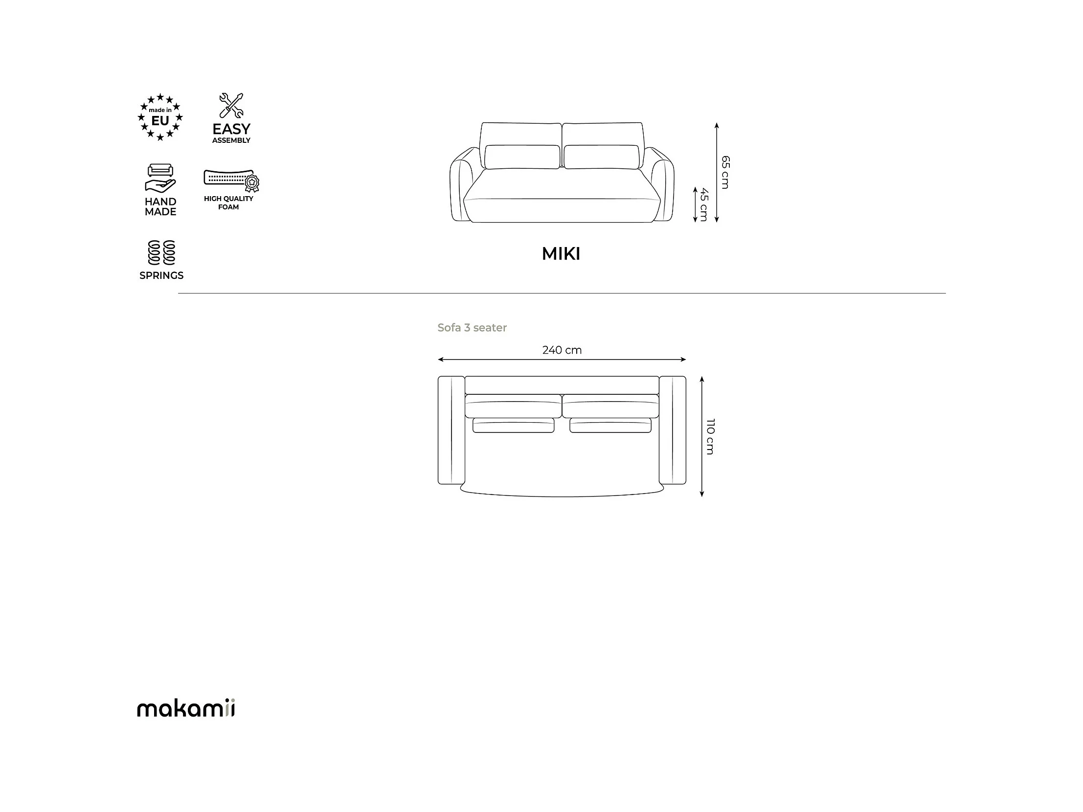 Canapé 3 places en tissu chenille - jeans - MIKI