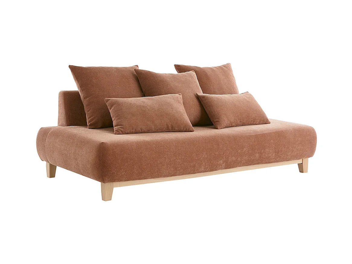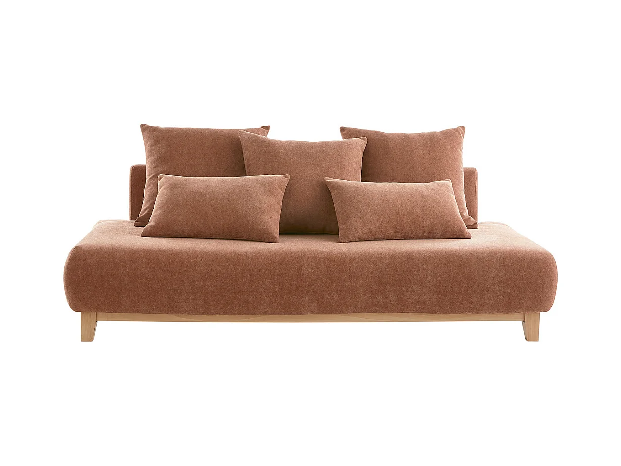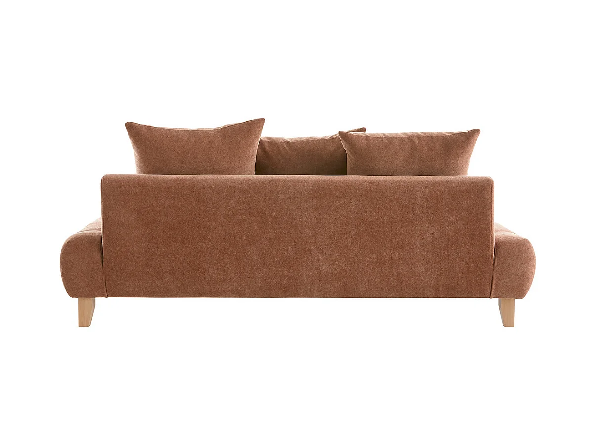 Canapé 3 places en tissu effet velours texturé terre brûlée et bois clair L200 cm ODEON