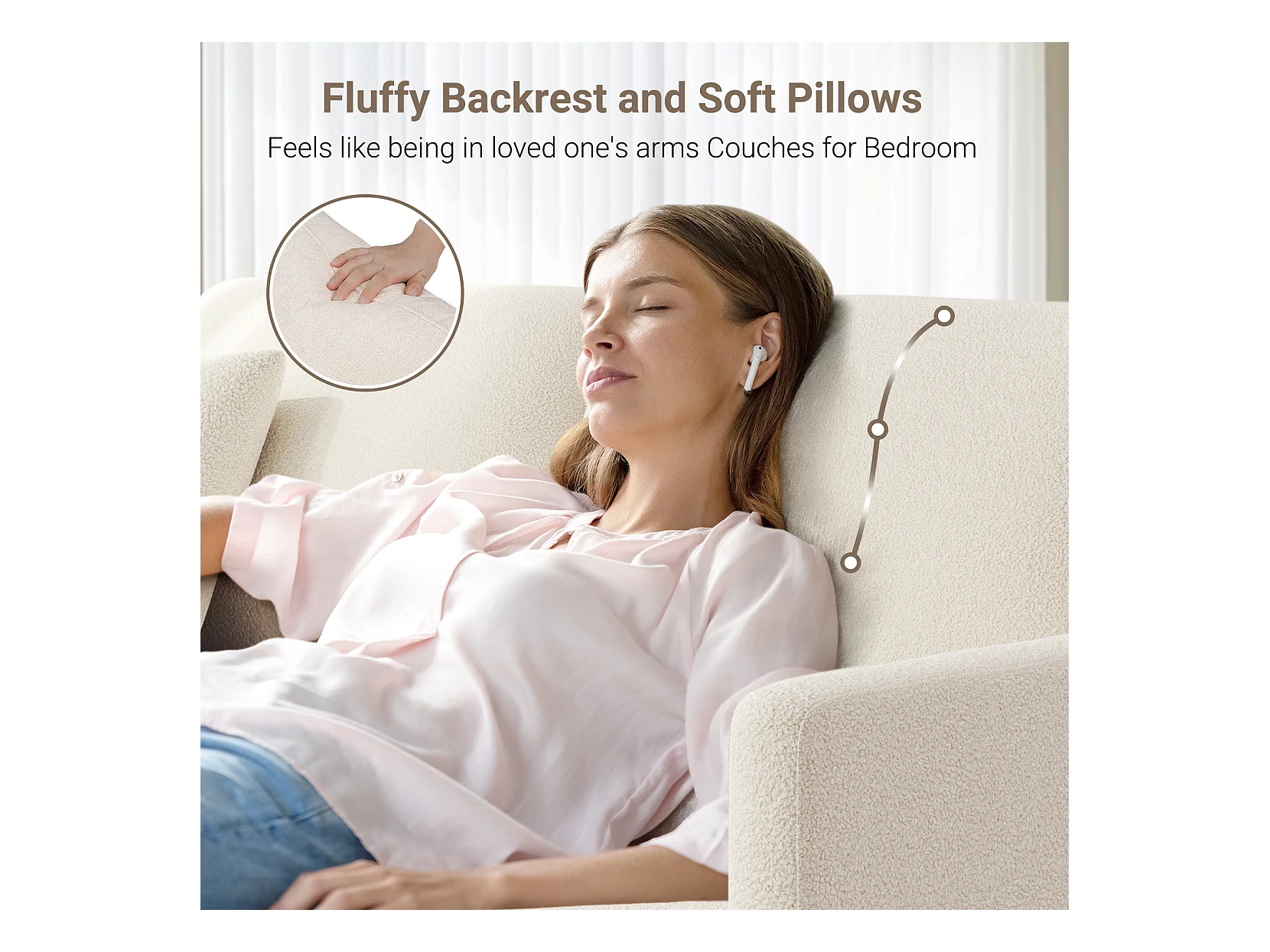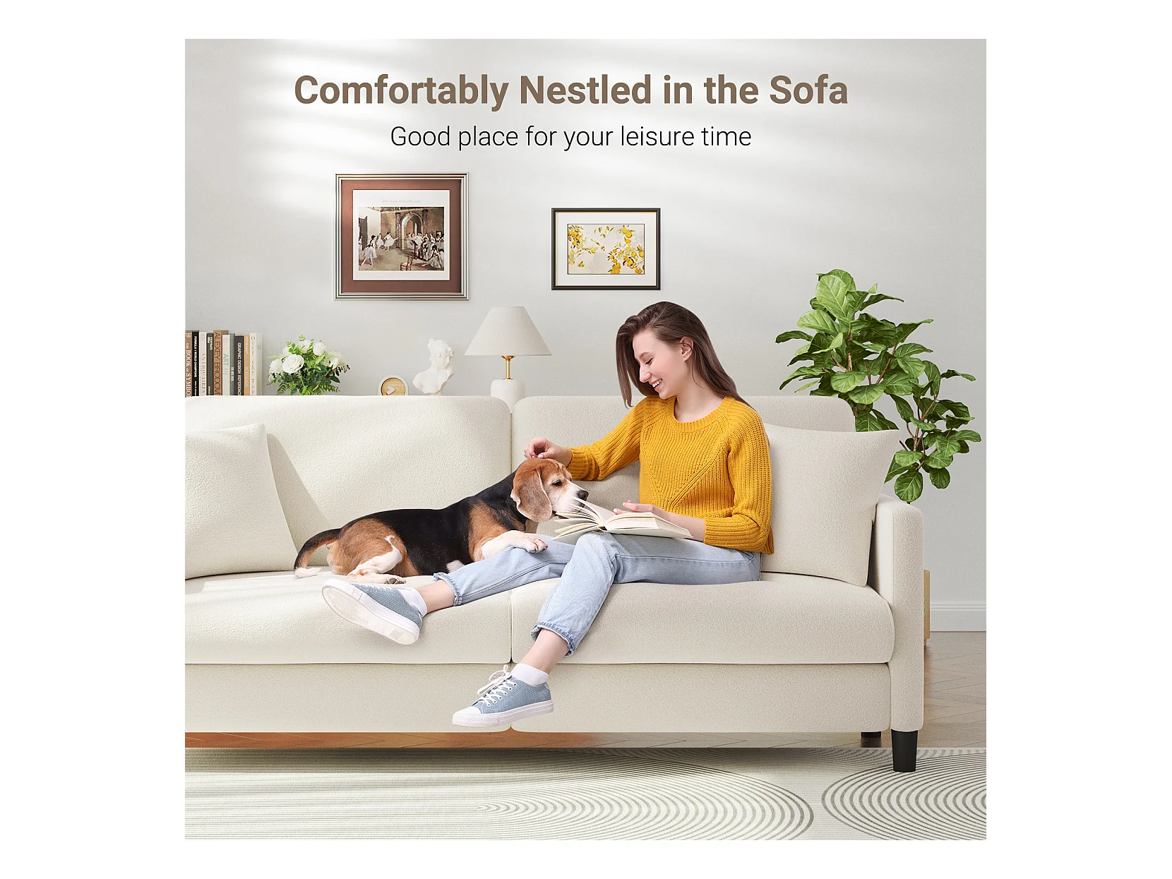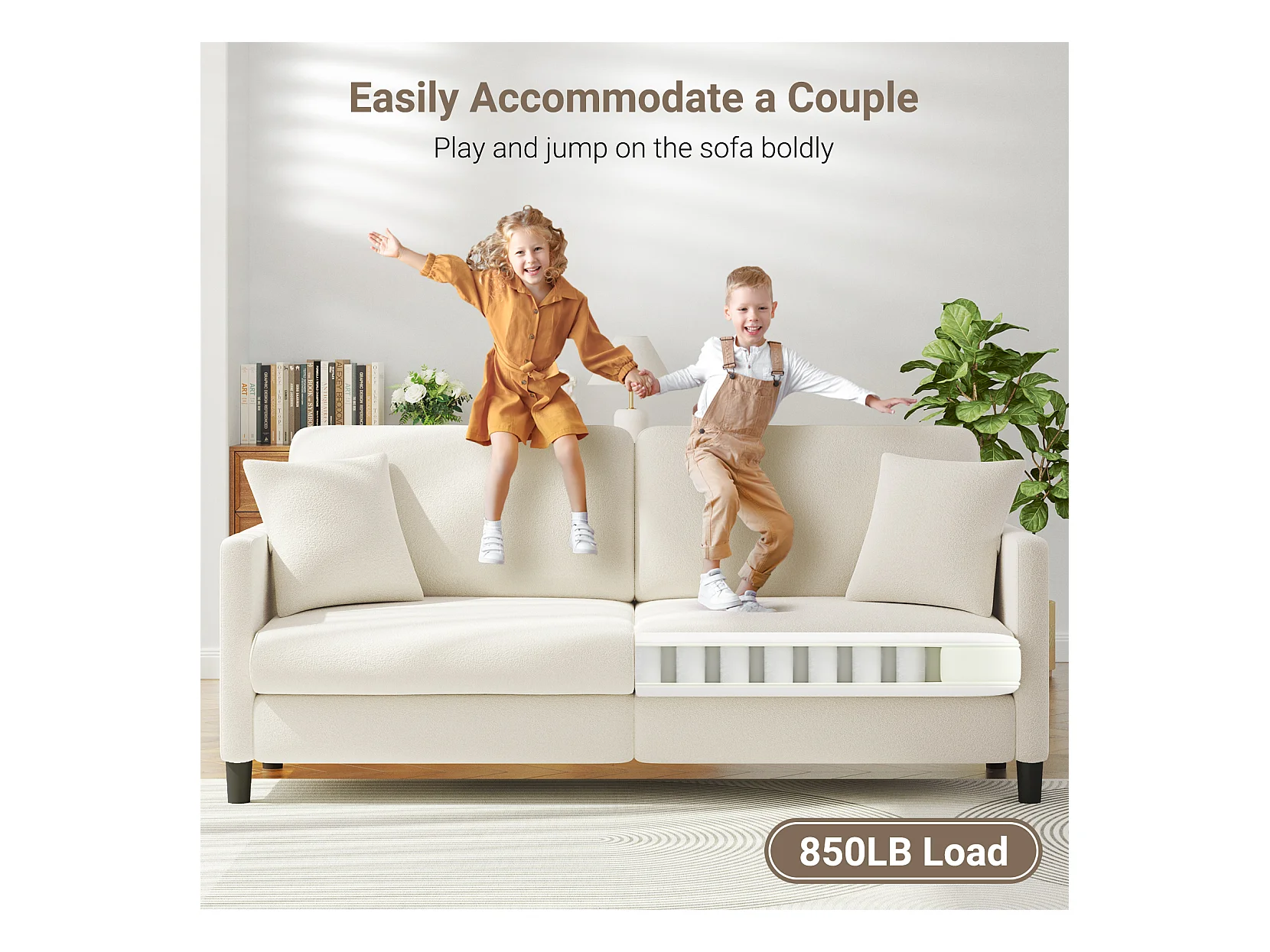Canapé 3 Places en Velours Teddy,Canapé Droit Confort en Bois Massif,Loveseat avec Accoudoirs,193x79x89cm,Beige