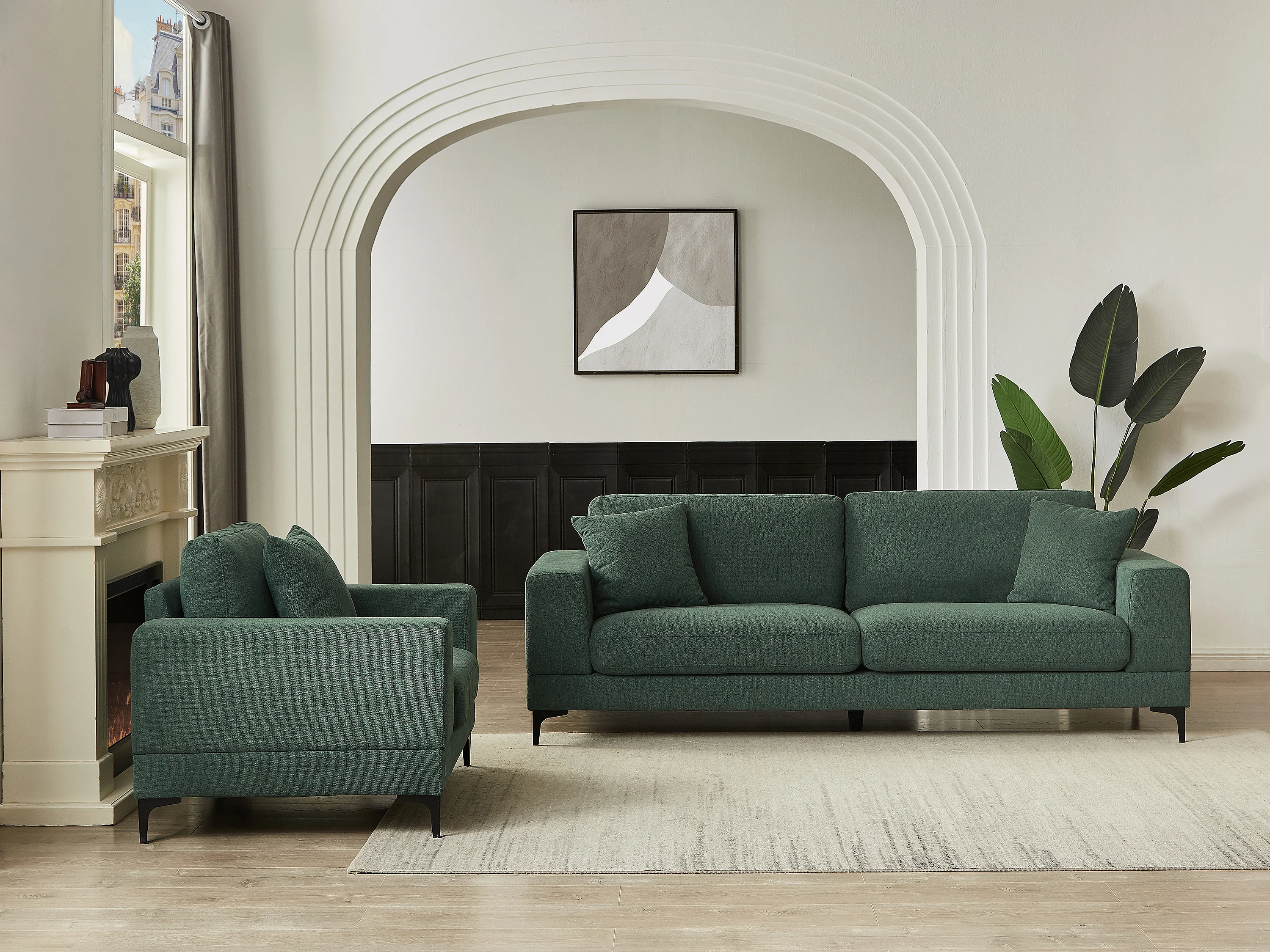 Canapé 3 places et fauteuil en tissu texturé vert JAMOLO