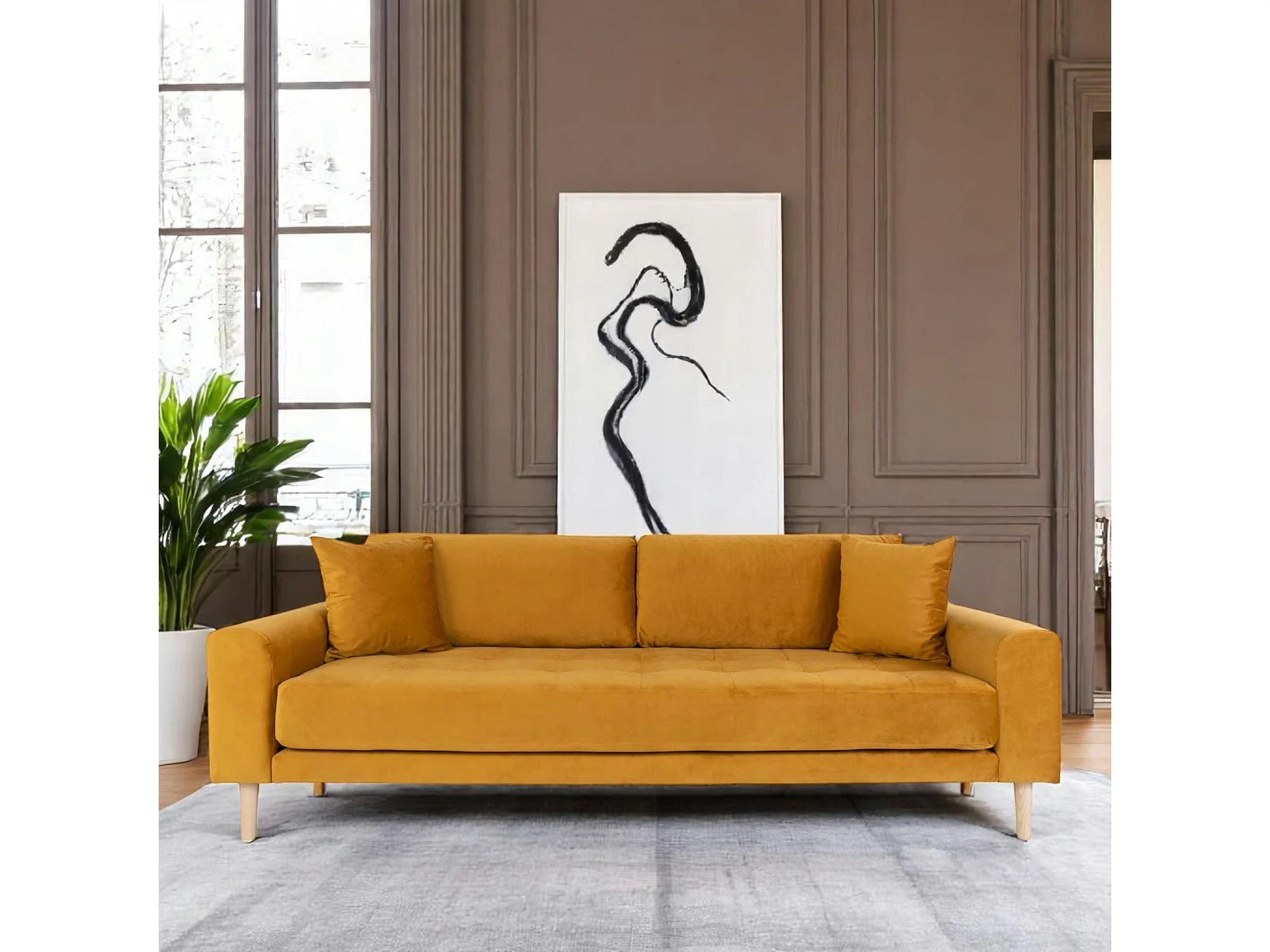 Canapé 3 places moutarde - velours, AMSTERDAM