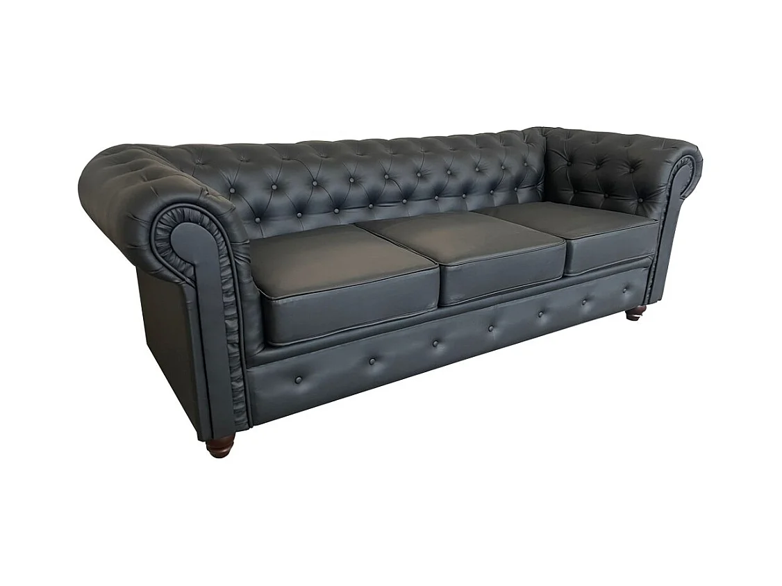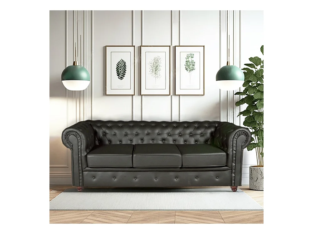 Canapé 3 places Noir revêtement effet cuir capitonné 213x85x72cm FEILD