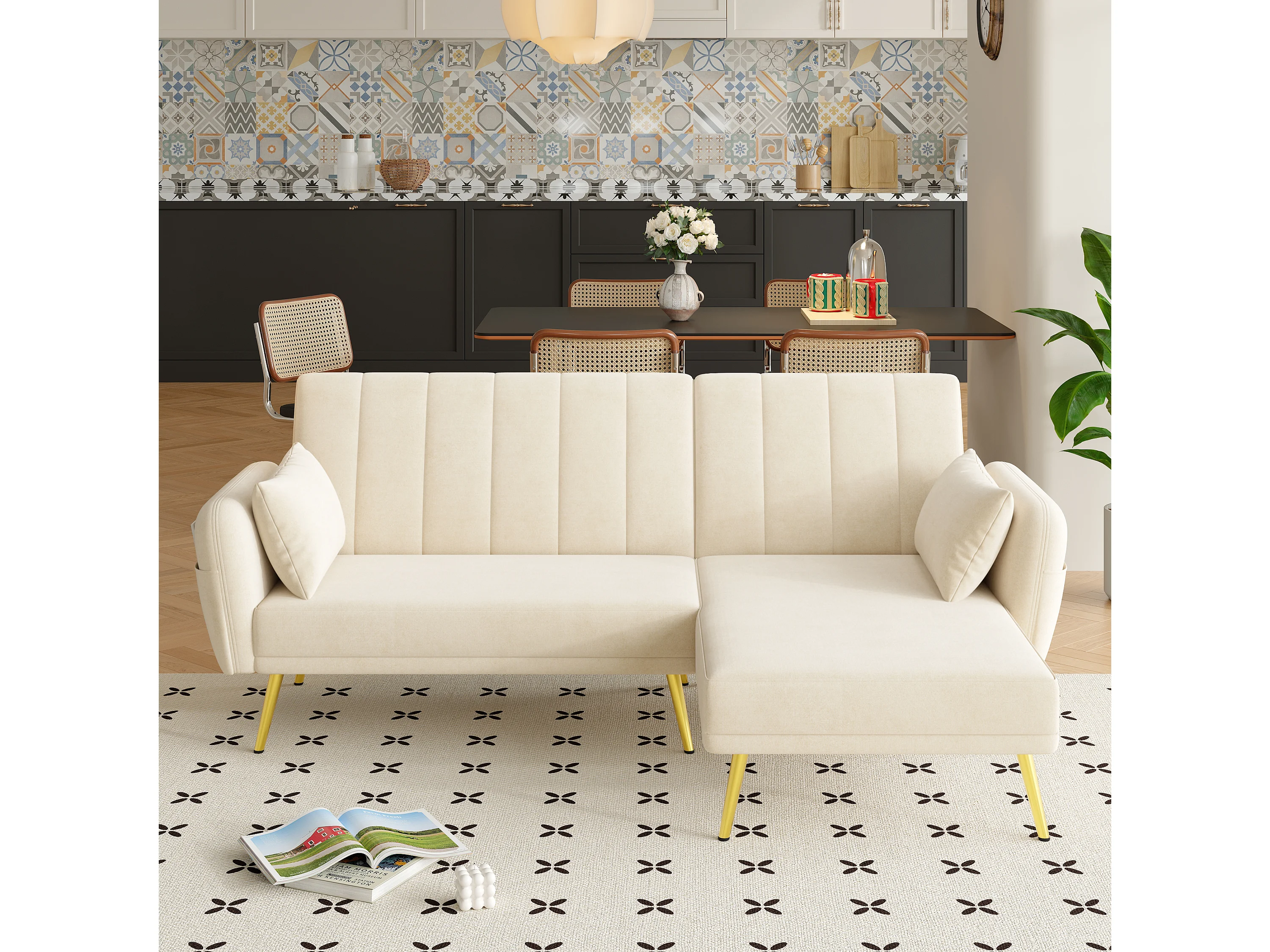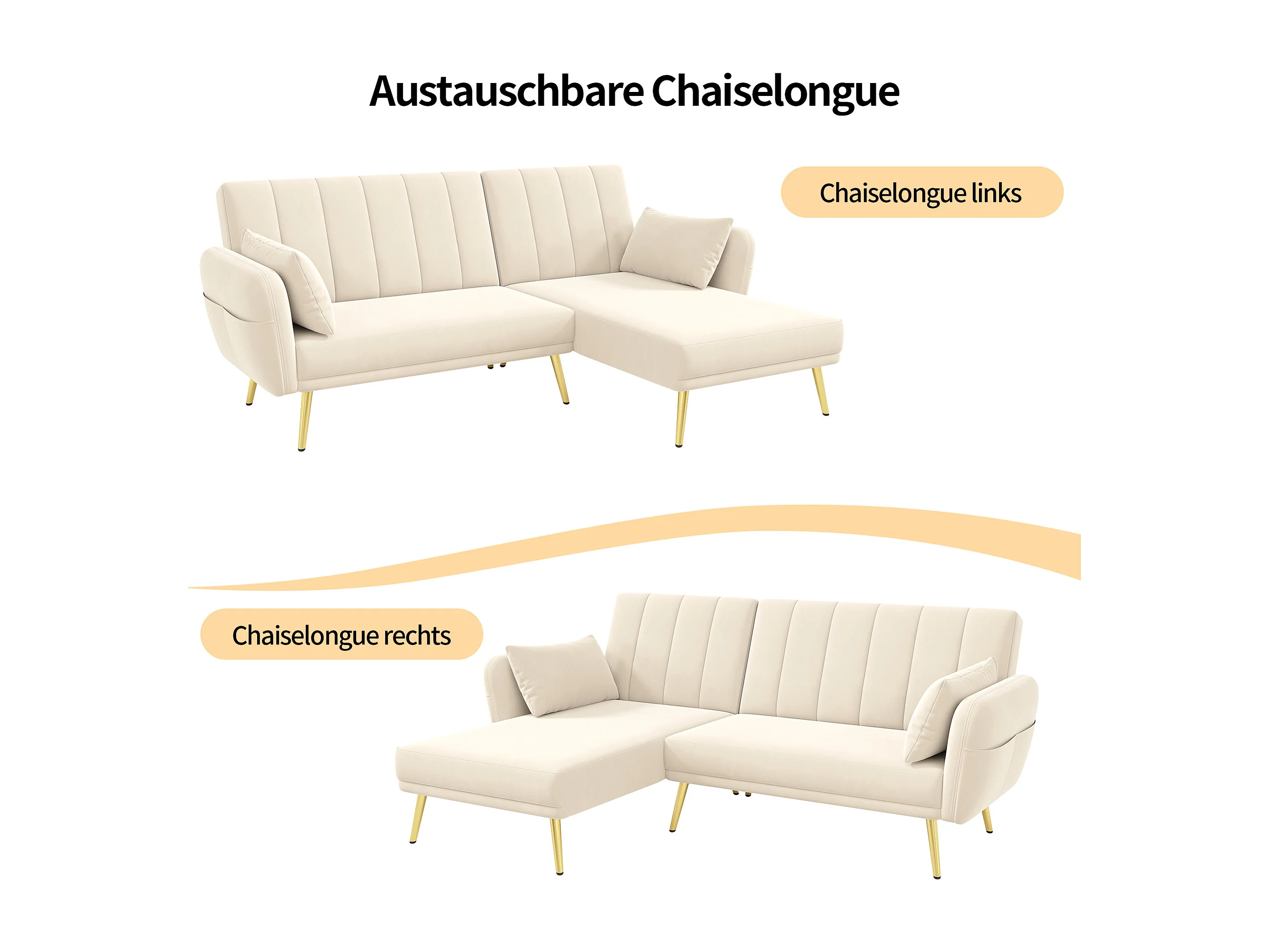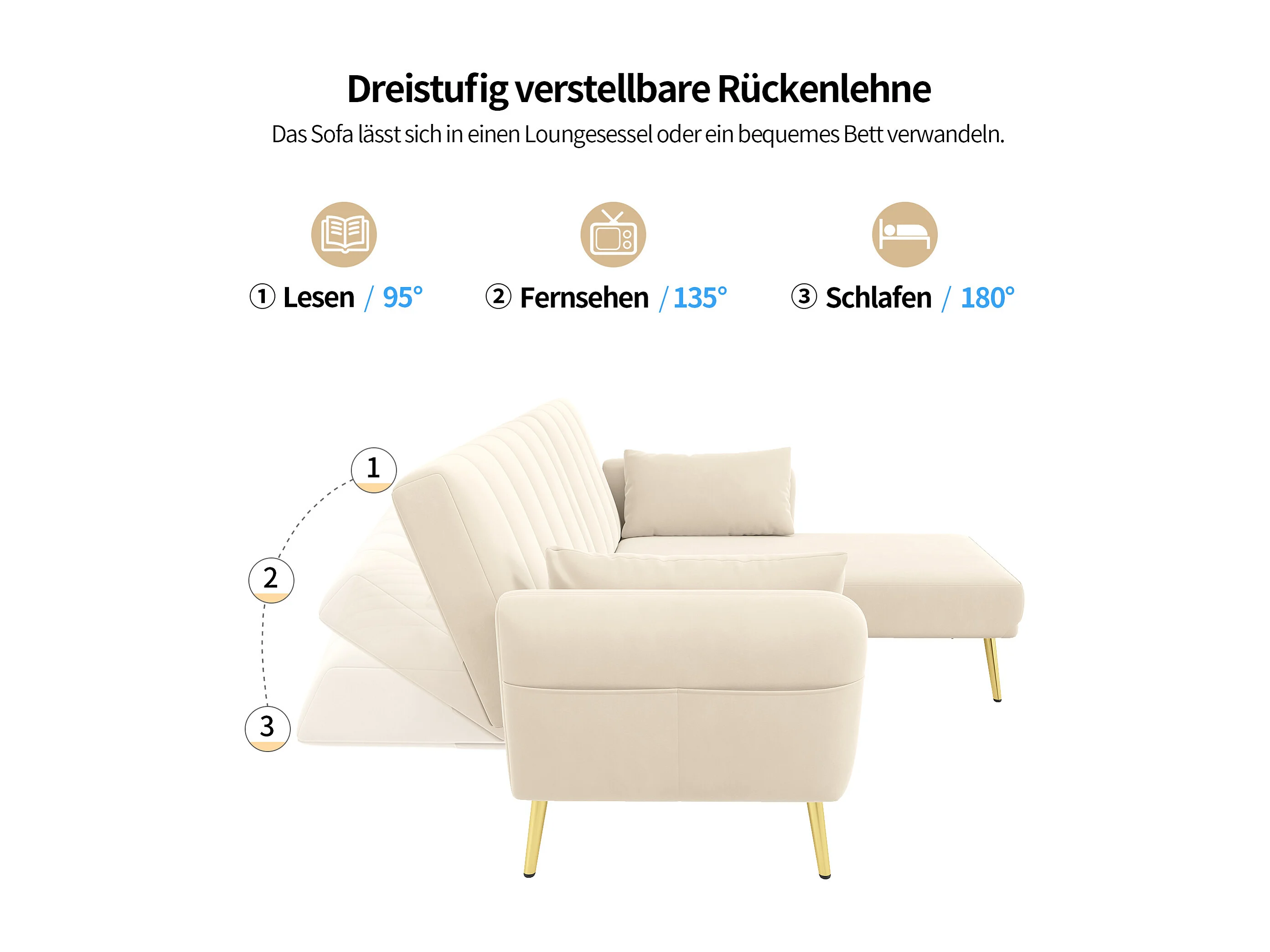 Canapé 3 places pliant - 191.5 x 130 x 80 cm - canapé d'angle avec fonction couchage - velours - beige