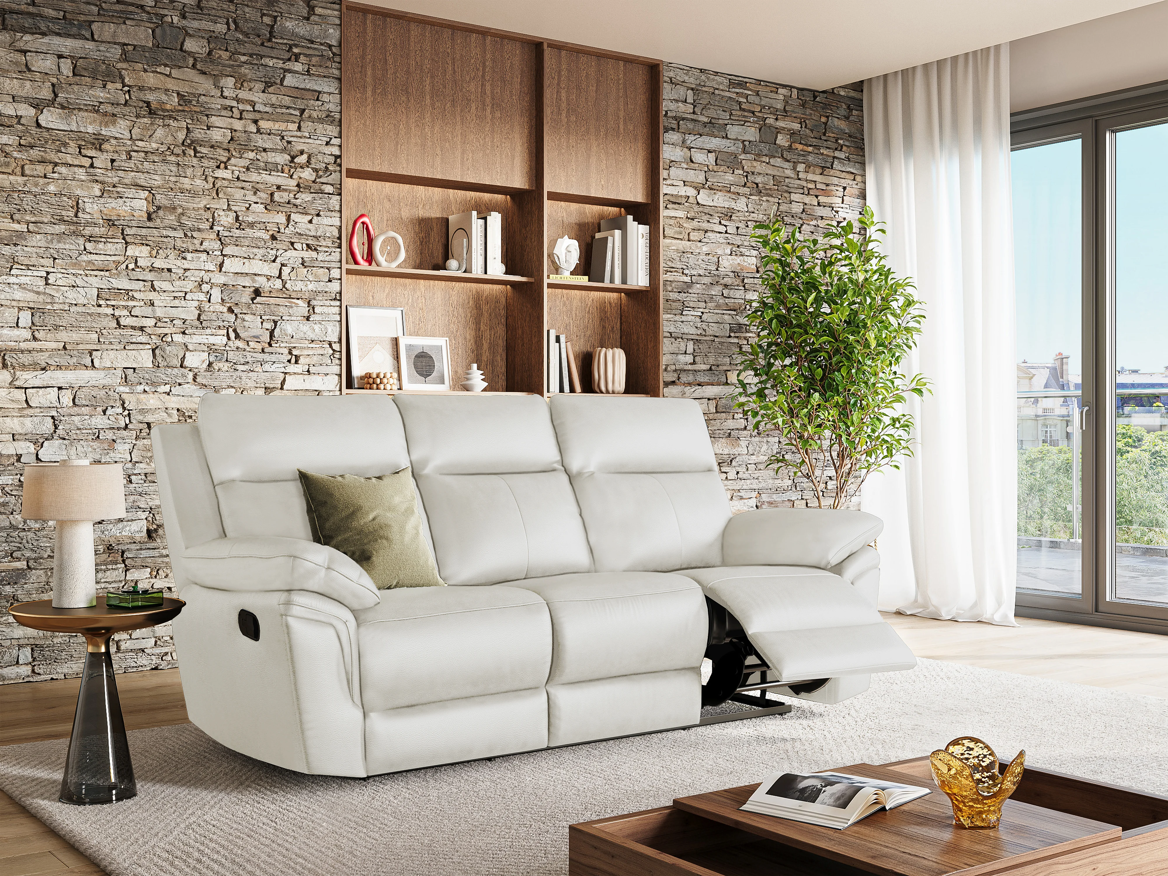 Canapé 3 places relax en cuir de buffle PAKITA - Ivoire