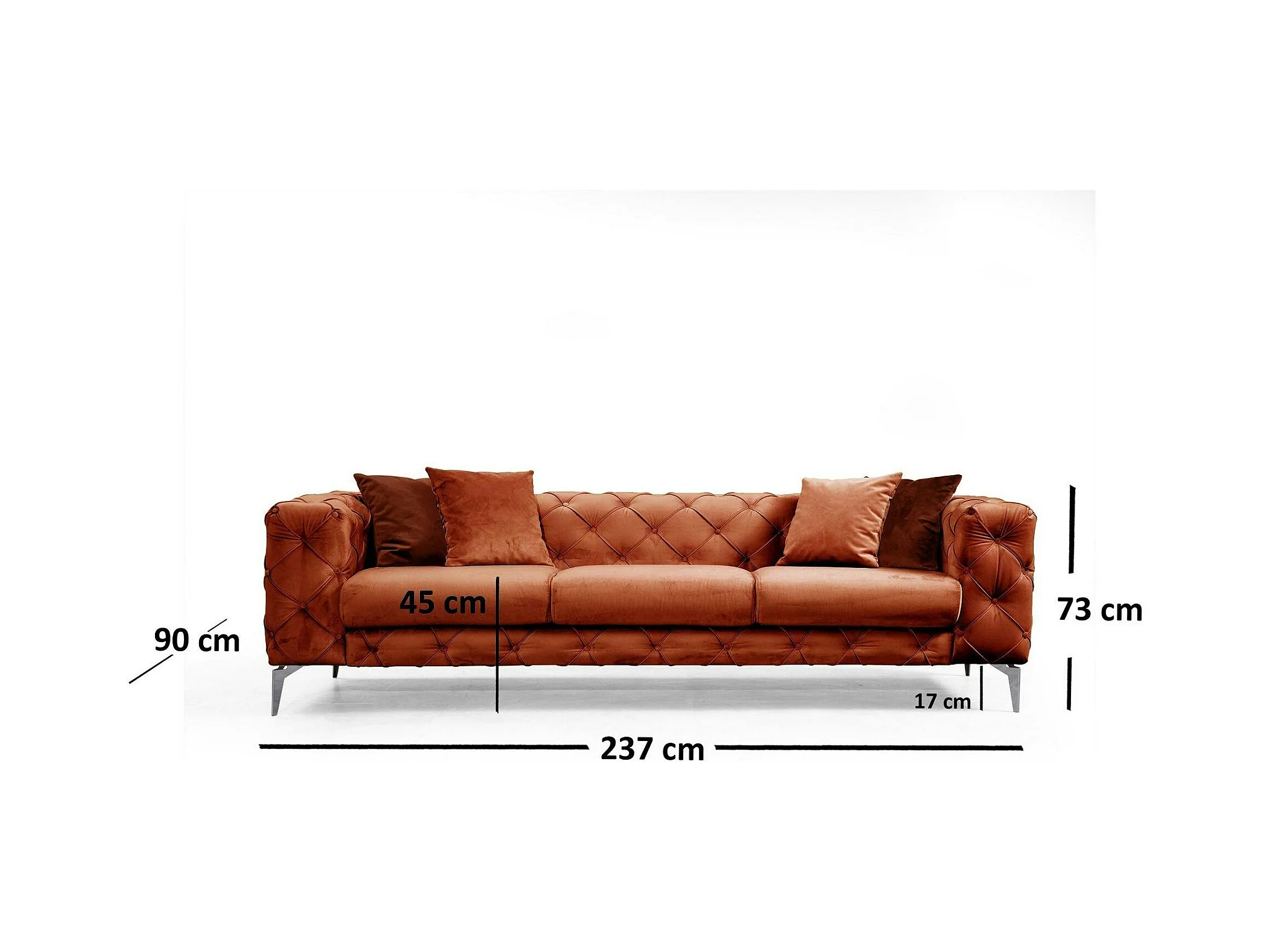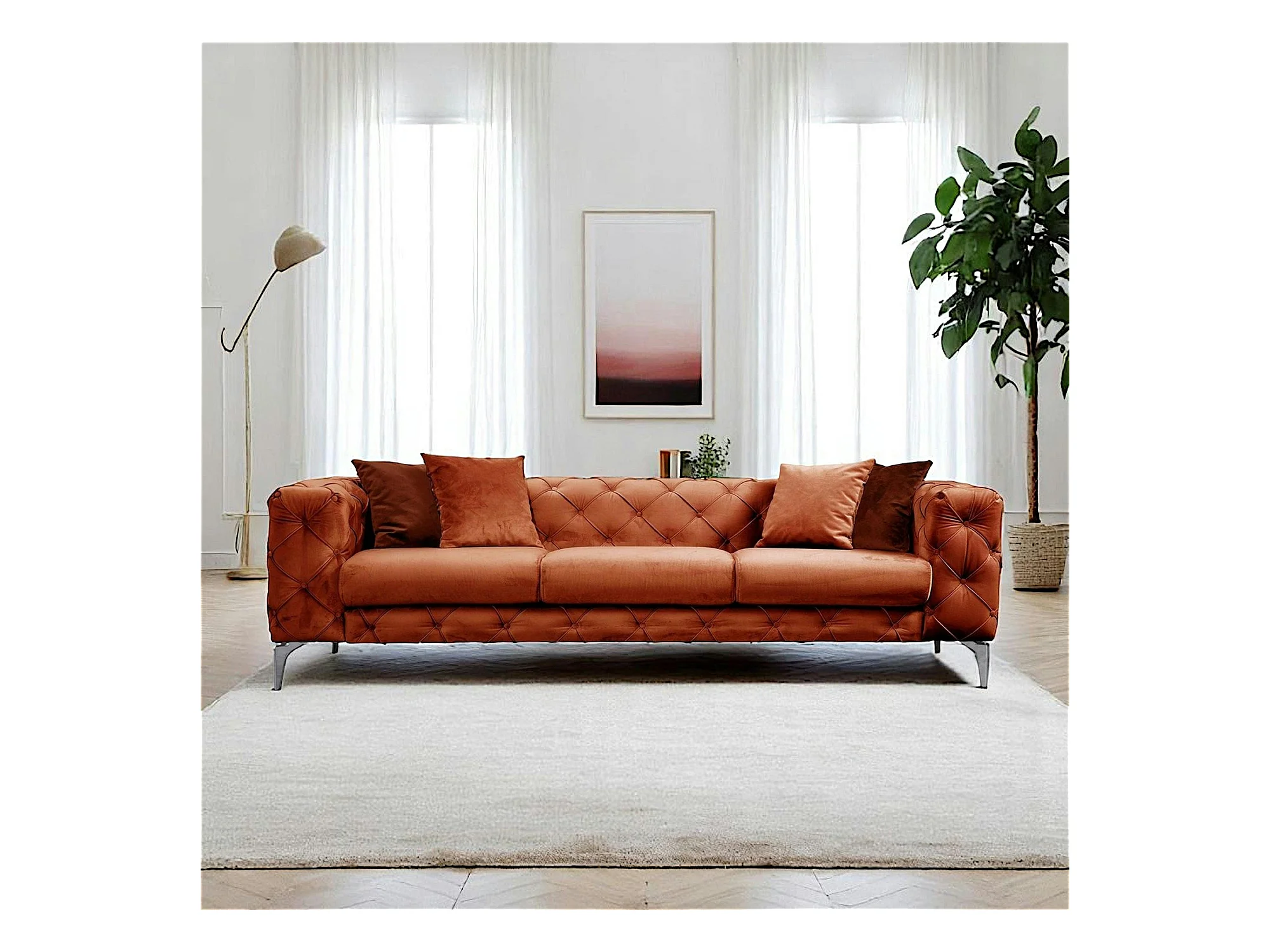 Canapé 3 places rouille en velours capitonné DOVER