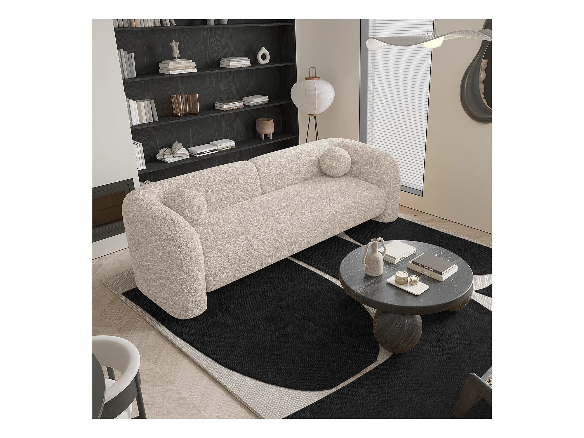 Canapé 3 places bouclette crème 226cm NOLA