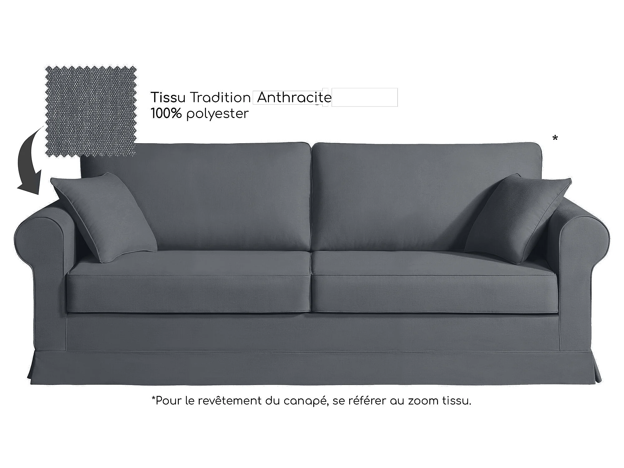 Canapé 4 pl COLME 210 cm fixe tissu Tradition Anthracite - 100% déhoussable - Fab. France