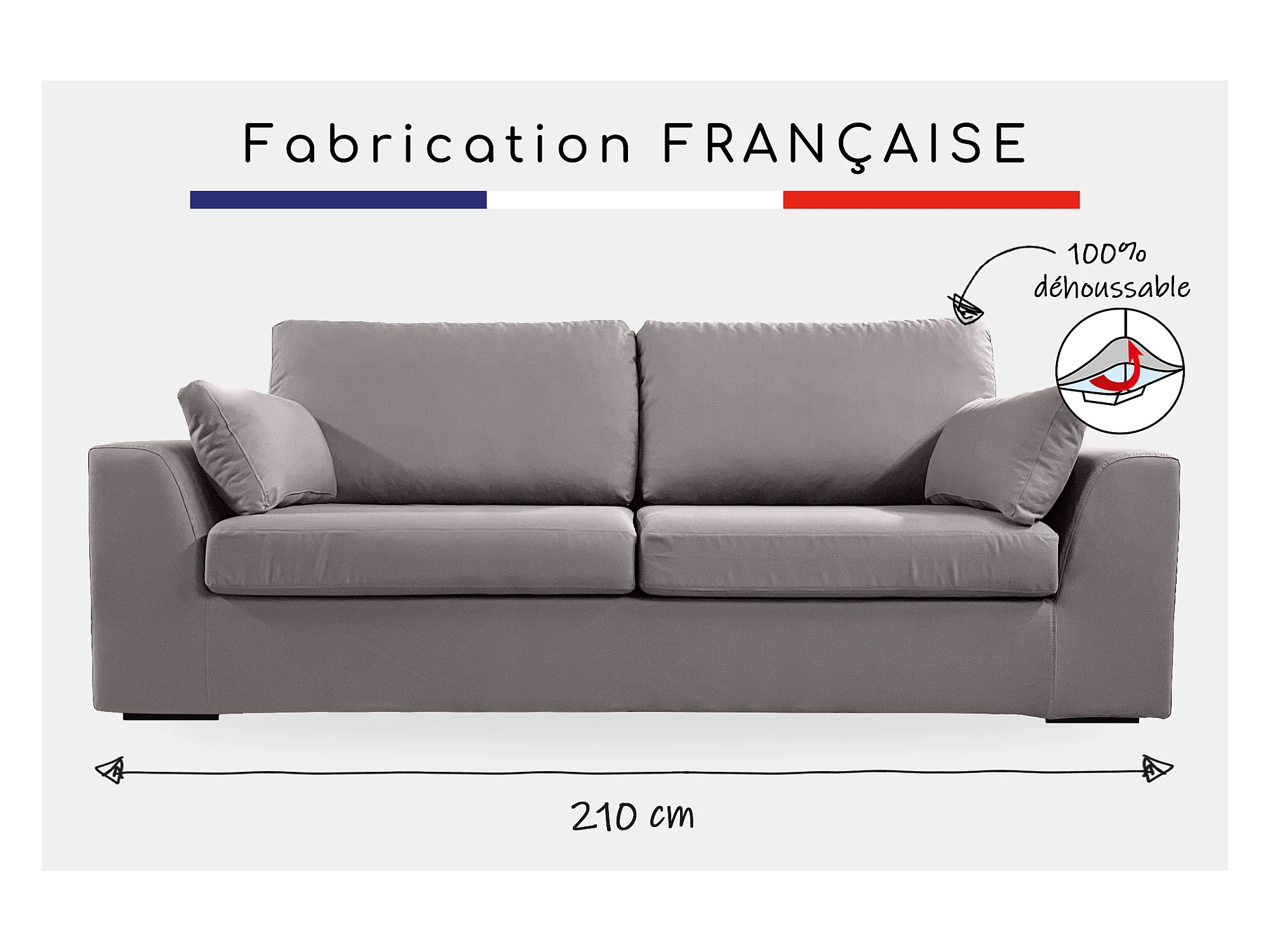 Canapé 4 pl TRESSIN 170 cm fixe tissu coton Gris Clair - 100% déhoussable - Fab. France