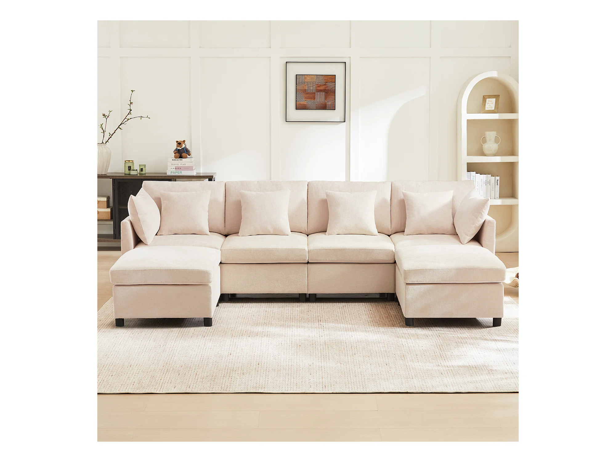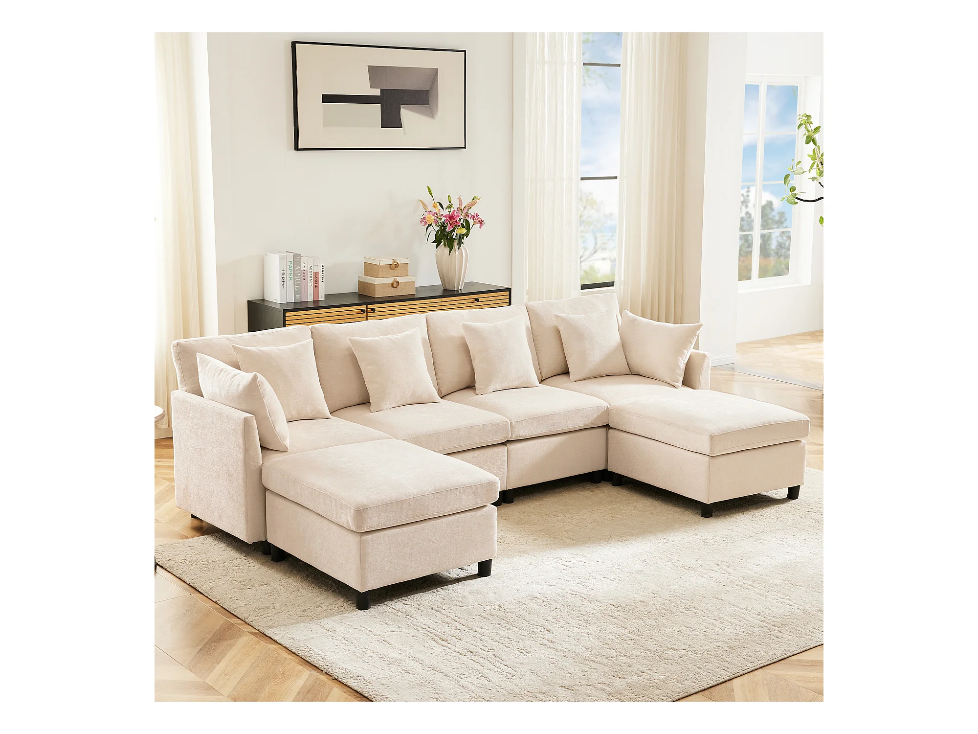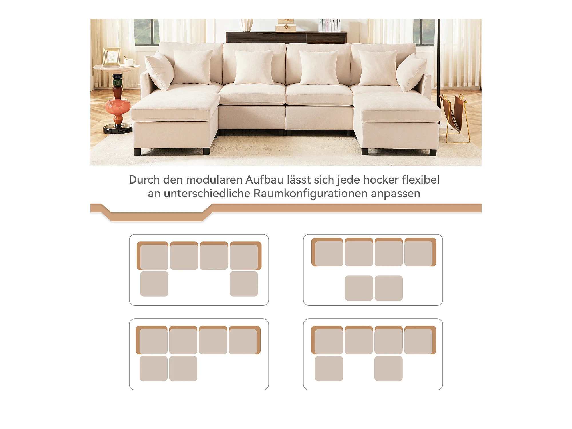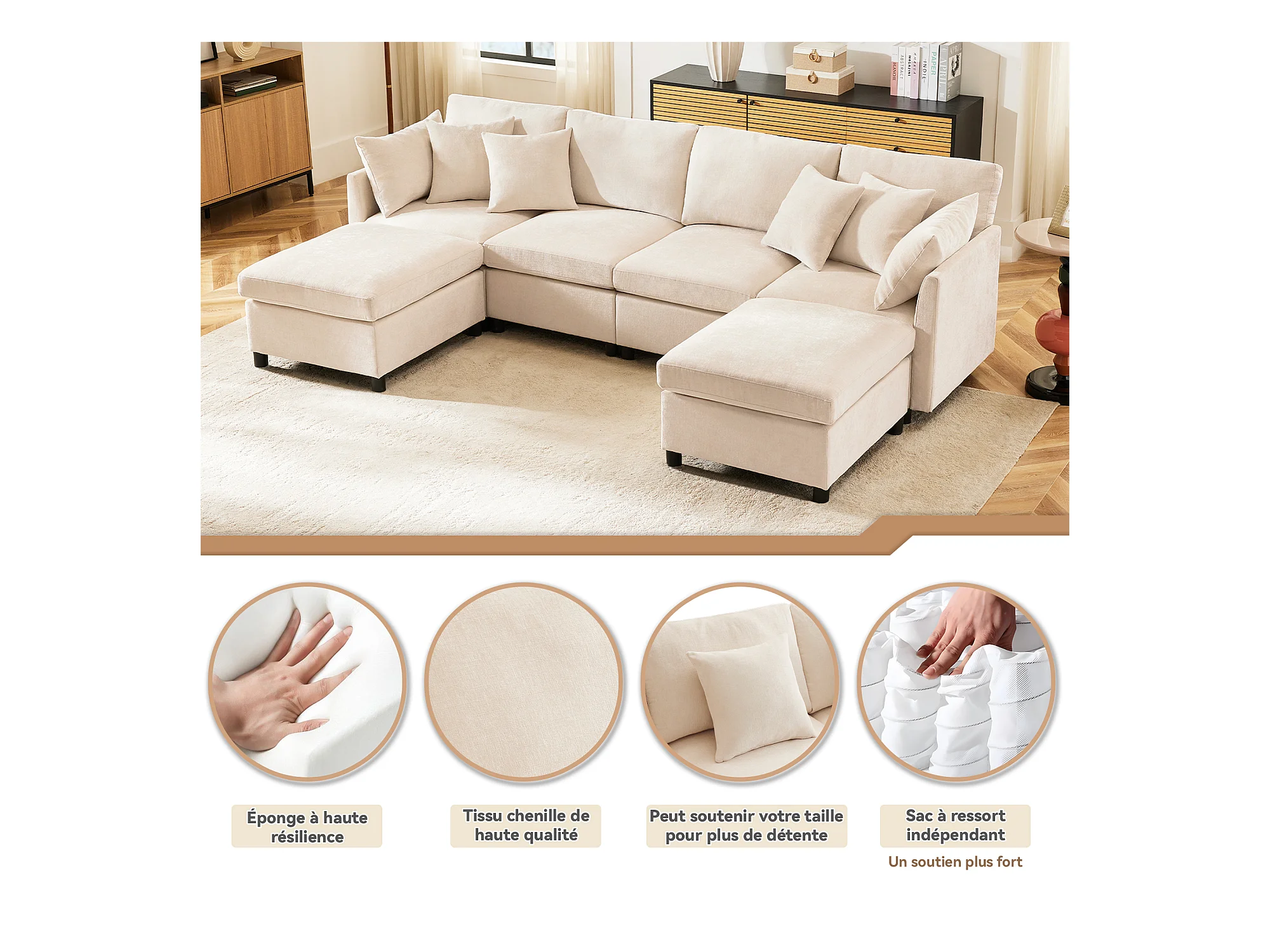 Canapé 4 places avec repose-pieds amovible - 278 x 161 x 81 cm - canapé en U - velours - beige