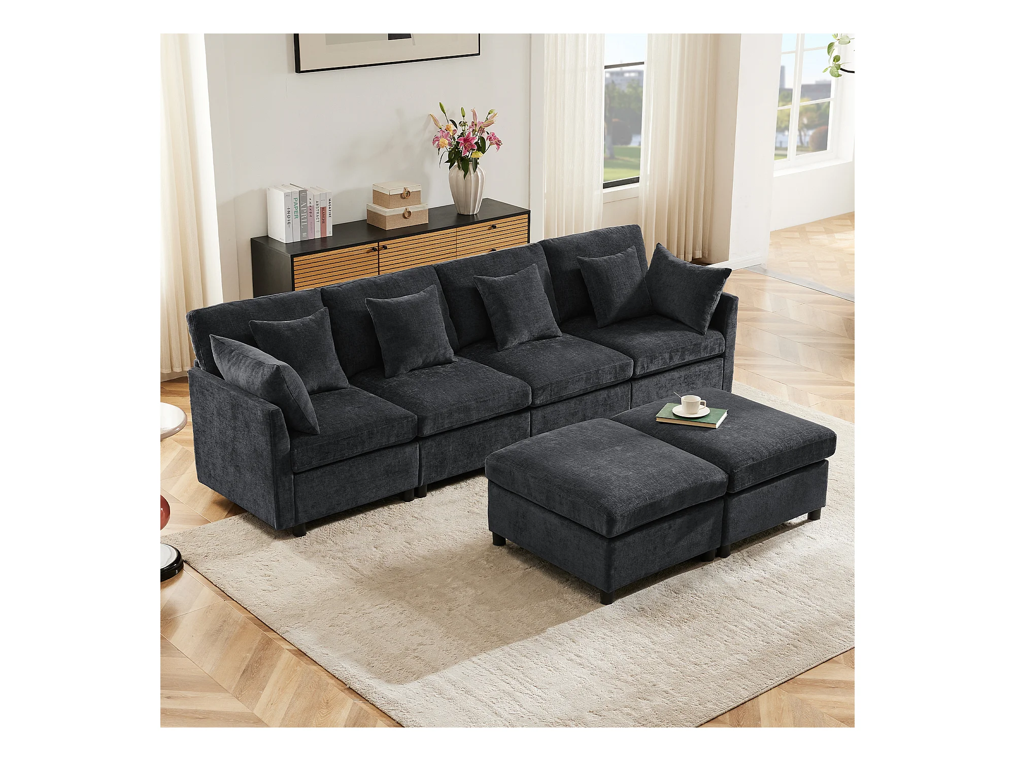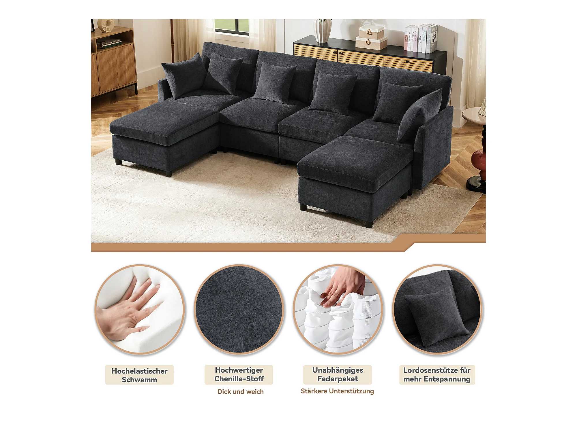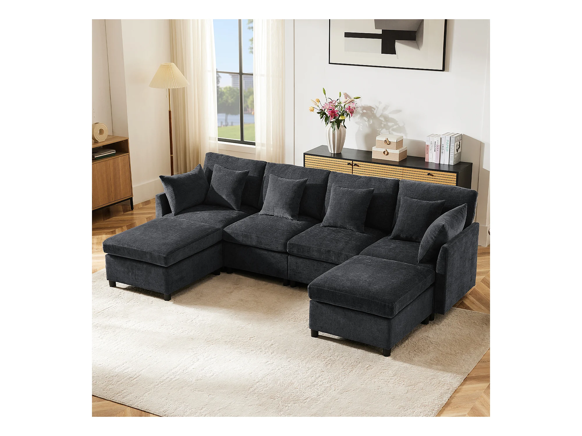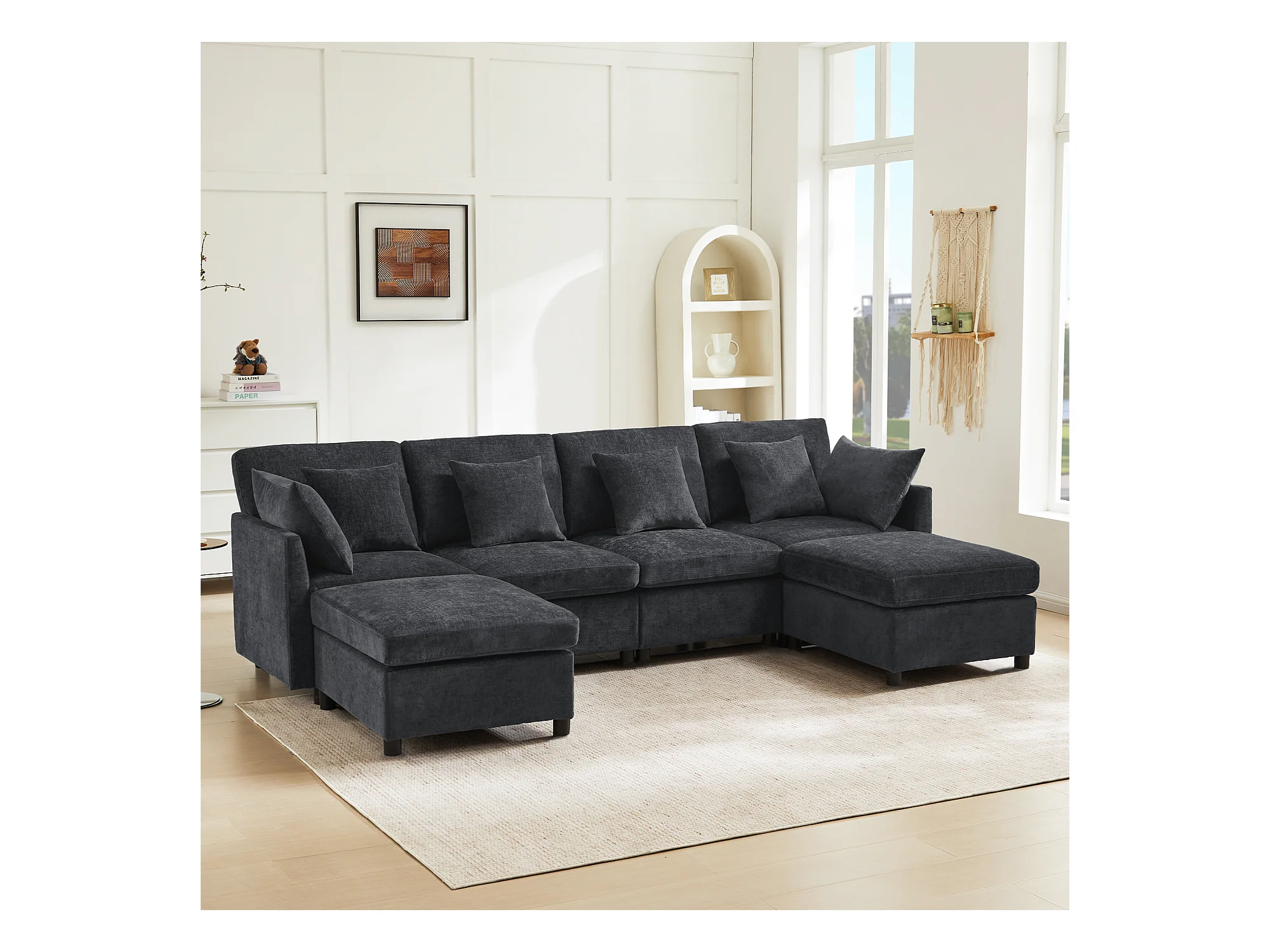 Canapé 4 places avec repose-pieds amovible - 278 x 161 x 81 cm - canapé en U - velours - gris