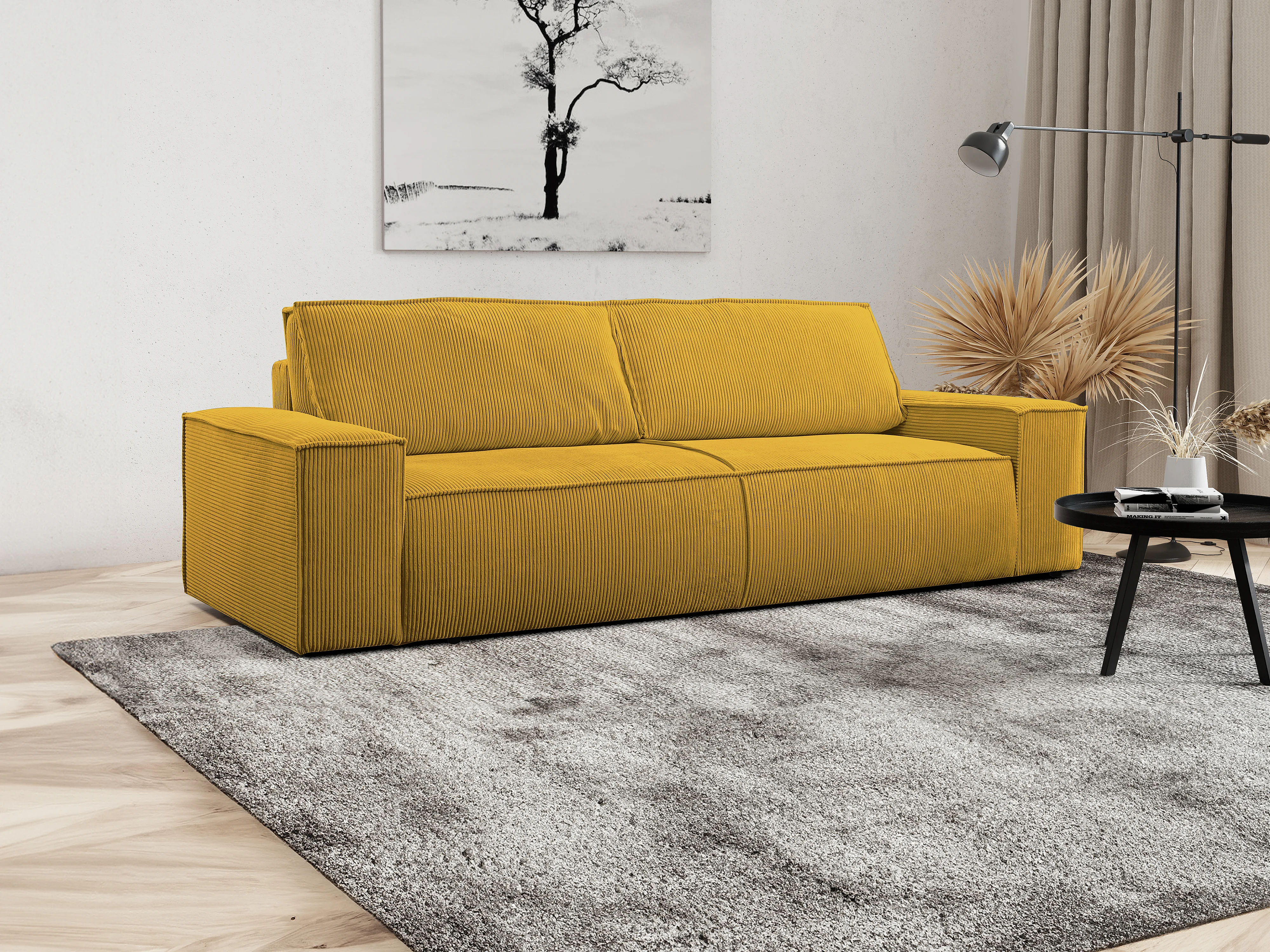 Canapé 4 places convertible en velours côtelé jaune AMELIA
